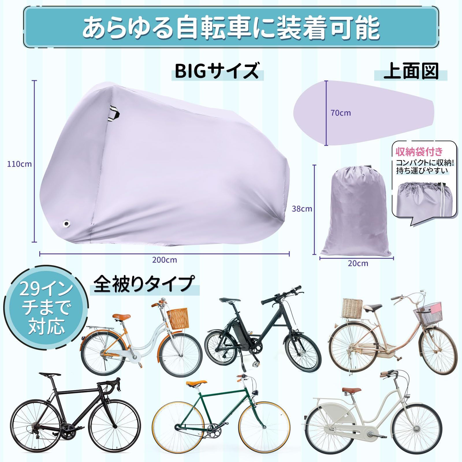 LIHAO 自転車カバー 防水 大型 電動自転車カバー 29インチまで対応 サイクルカバー 破れにくい 撥水加工 雨避け 風飛び防止 UVカット 盗難防止 装着簡単 収納袋付き 紫