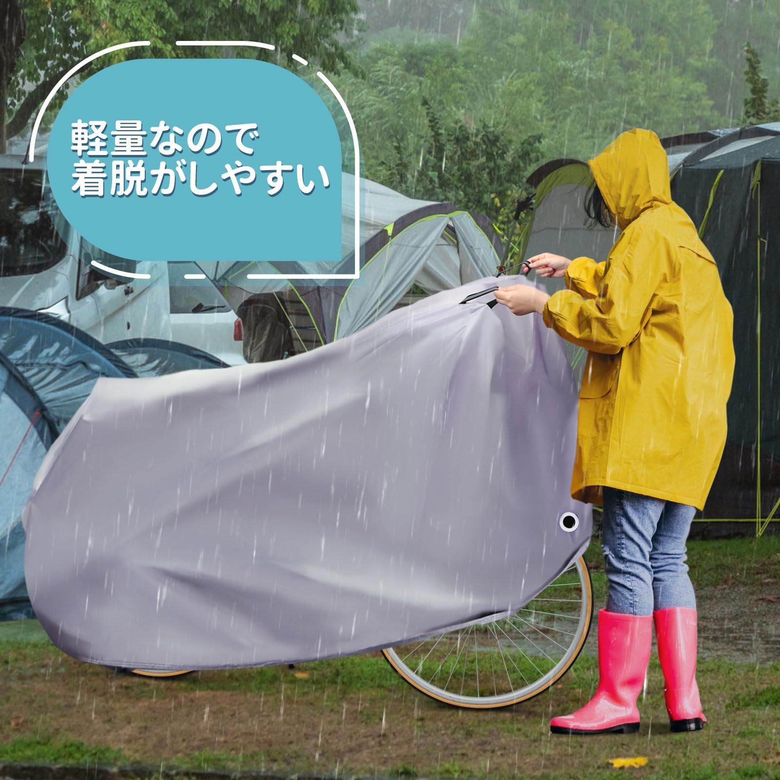 【強度あり・破れにくい】高密度のポリエステル生地を使用し、ビニール製の自転車カバーより5倍以上の強度があり、丈夫で破れにくく、耐久性あり、自転車カバーにちょうどいい厚さ、バイクカバーのように厚すぎず、着脱がしやすいサイクルカバーです。