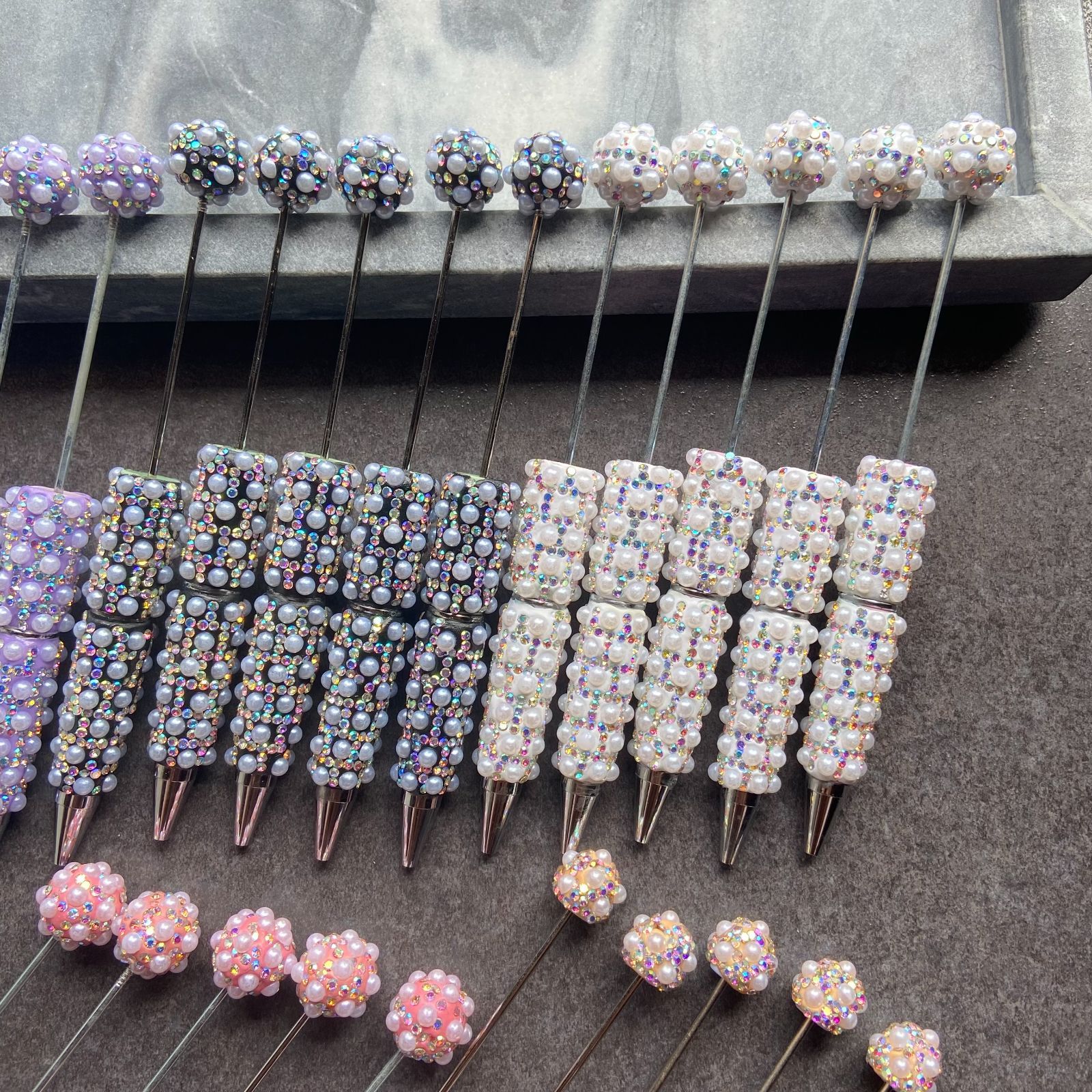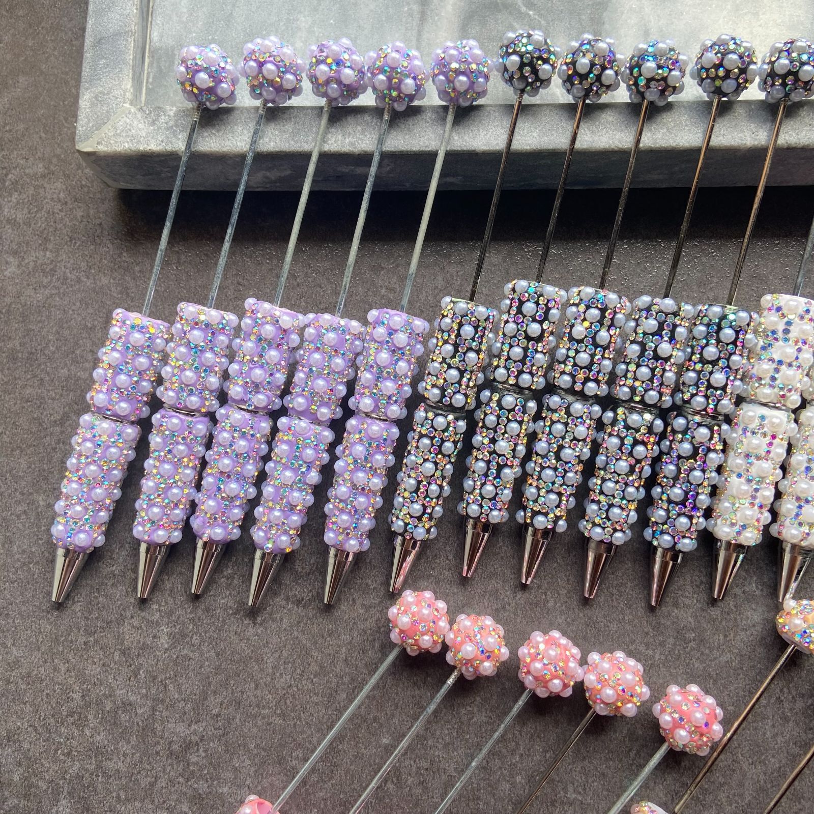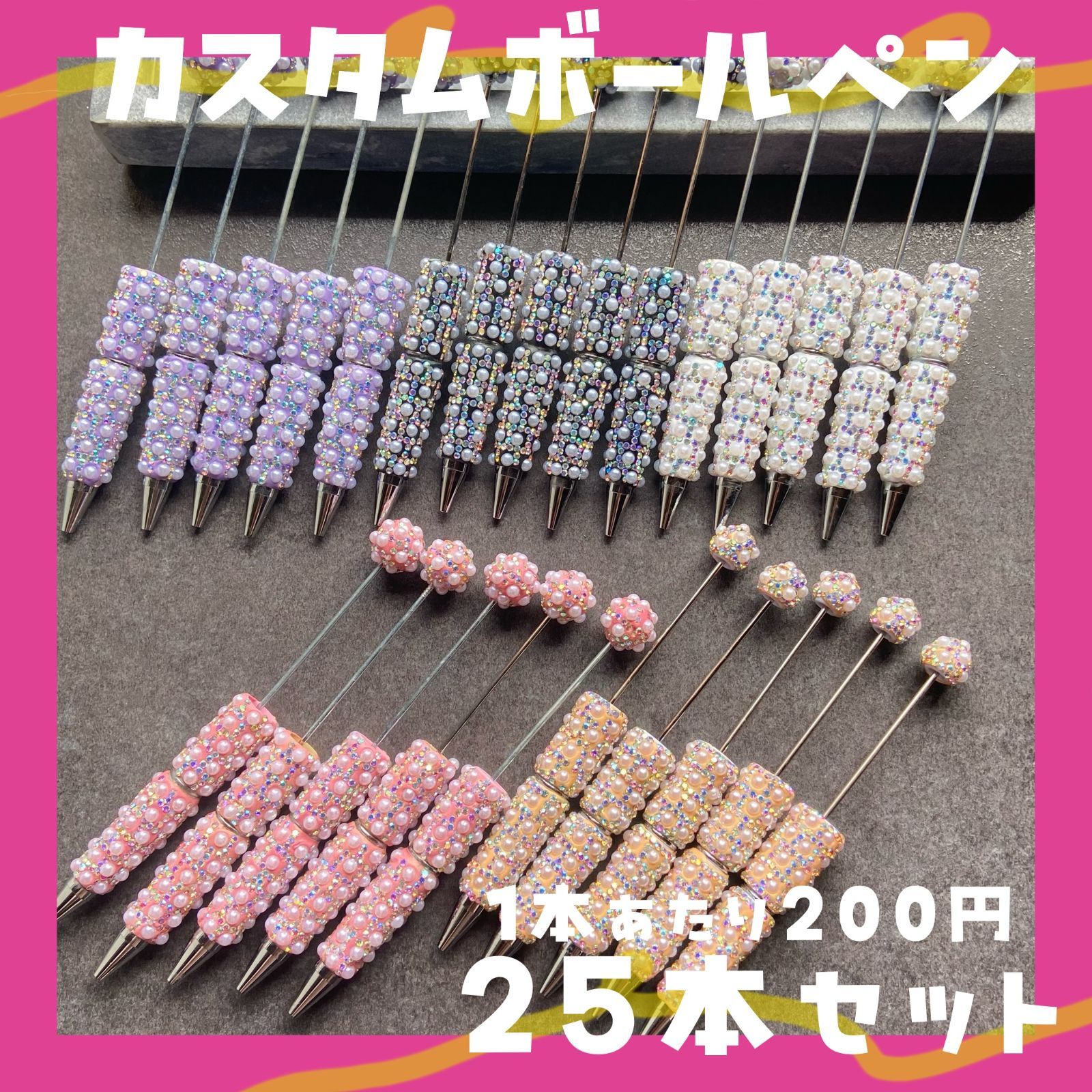 本体だけでなく、ヘッドにもパール装飾がついたカスタム用ボールペン25本セットです。