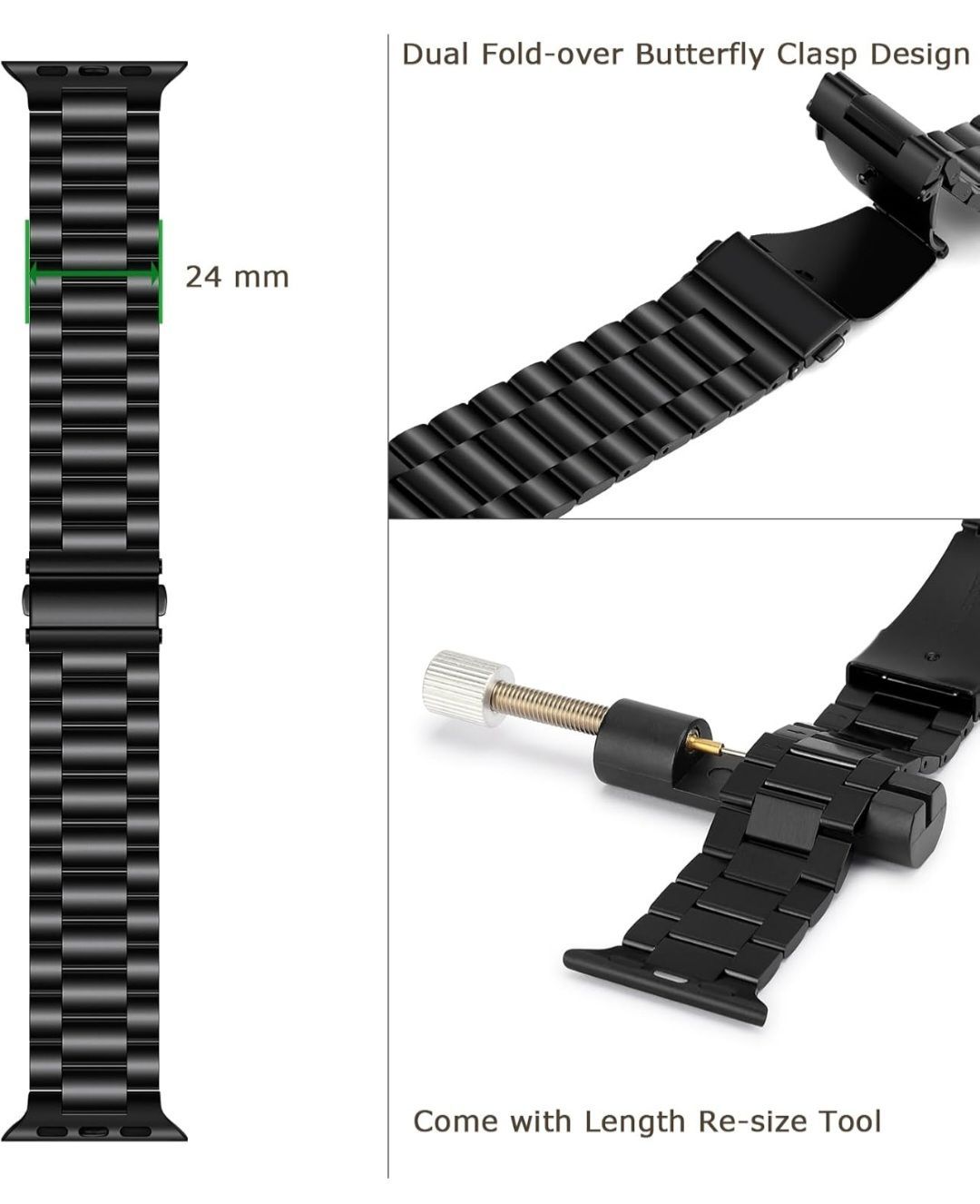 調節可能なサイズ:バンドのサイズを調整する長さサイズ変更ツールが付属します。フィット 6.1" - 8.8" (155 mm - 225 mm) 手首(さらにリンクが必要な場合は、お気軽にお問い合わせください)。洗練されたデュアル折りたたみ式バタフライクラスプデザイン、簡単に脱着可能、安全かつファッション。