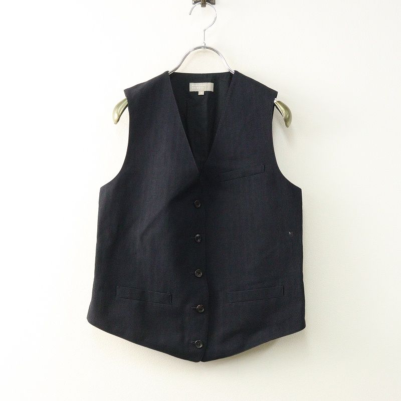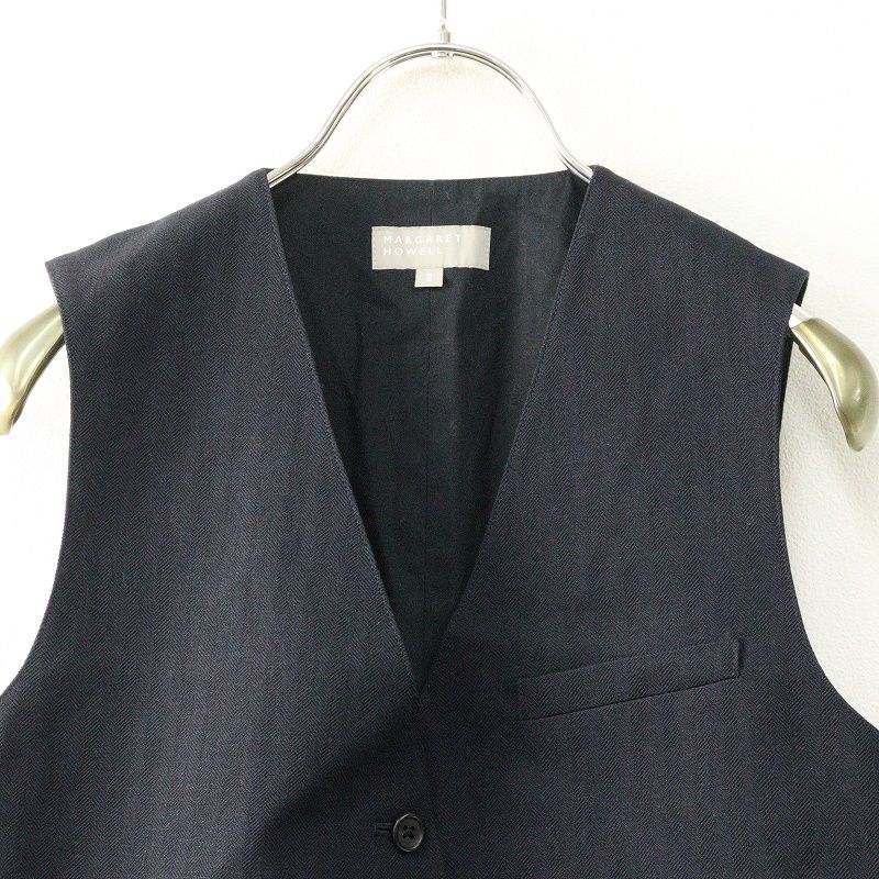 【品名】マーガレットハウエル MARGARET HOWELL リネンウールヘリンボーンベスト 2\ネイビー ジレ シンチバック