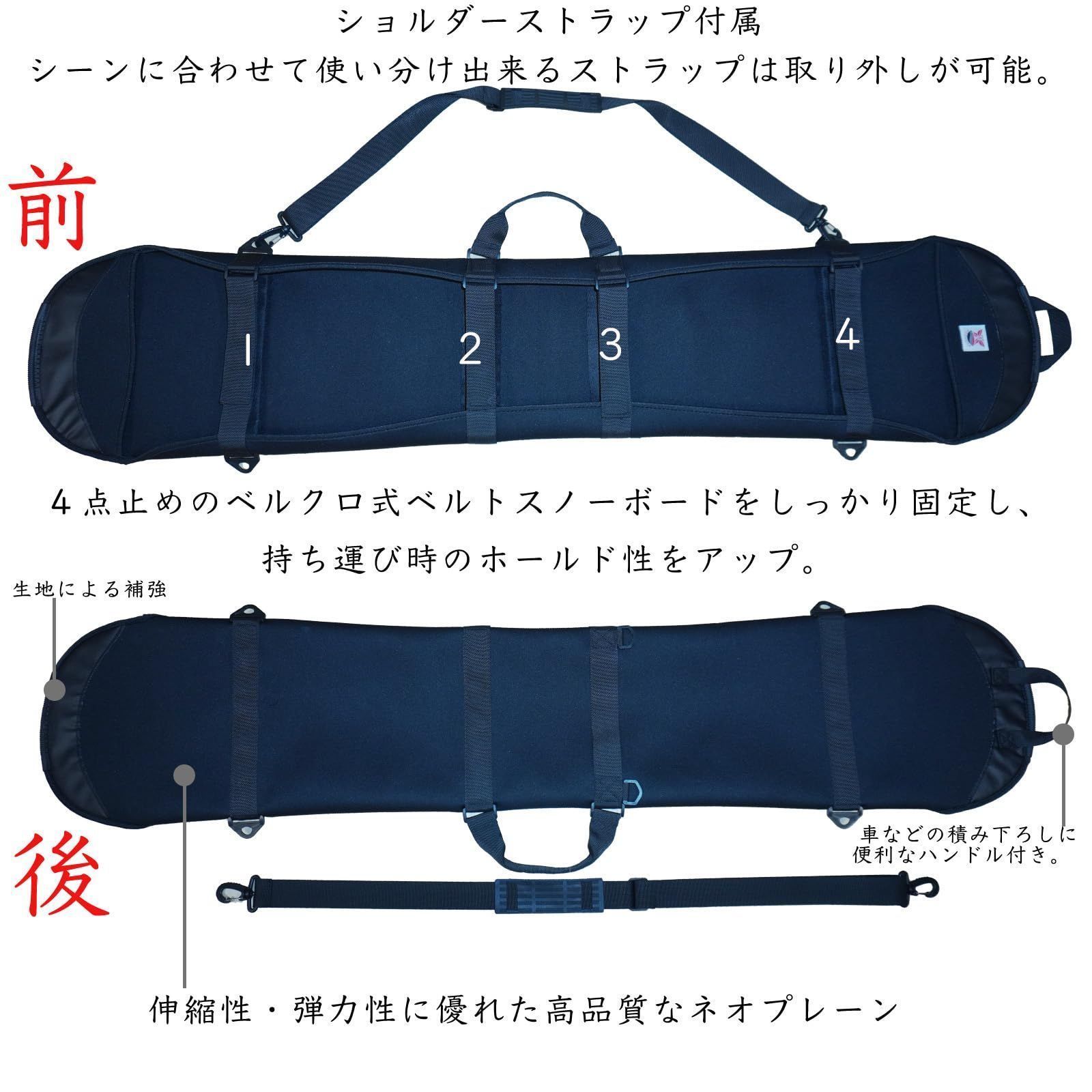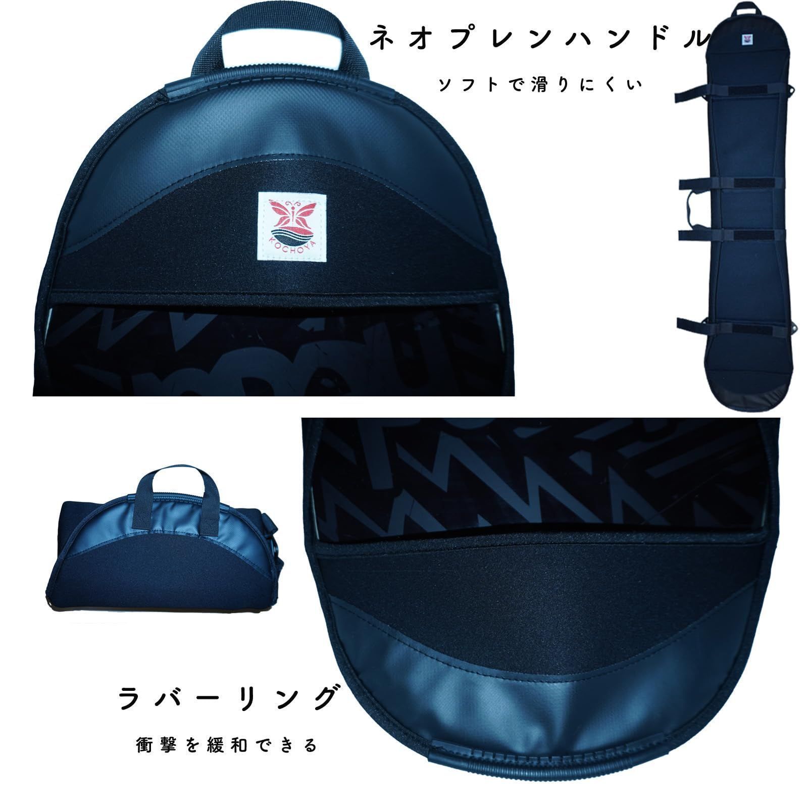 耐撕裂性と耐摩耗性に優れた素材を使用しています。ポッドとの接触面にパッドを装備し、傷から守ってくれる、防水素材でスノーボードをしっかりと保護します。車やバス、新幹線など移動中、エッジでのケガや周りへの傷からも守ってくれます。