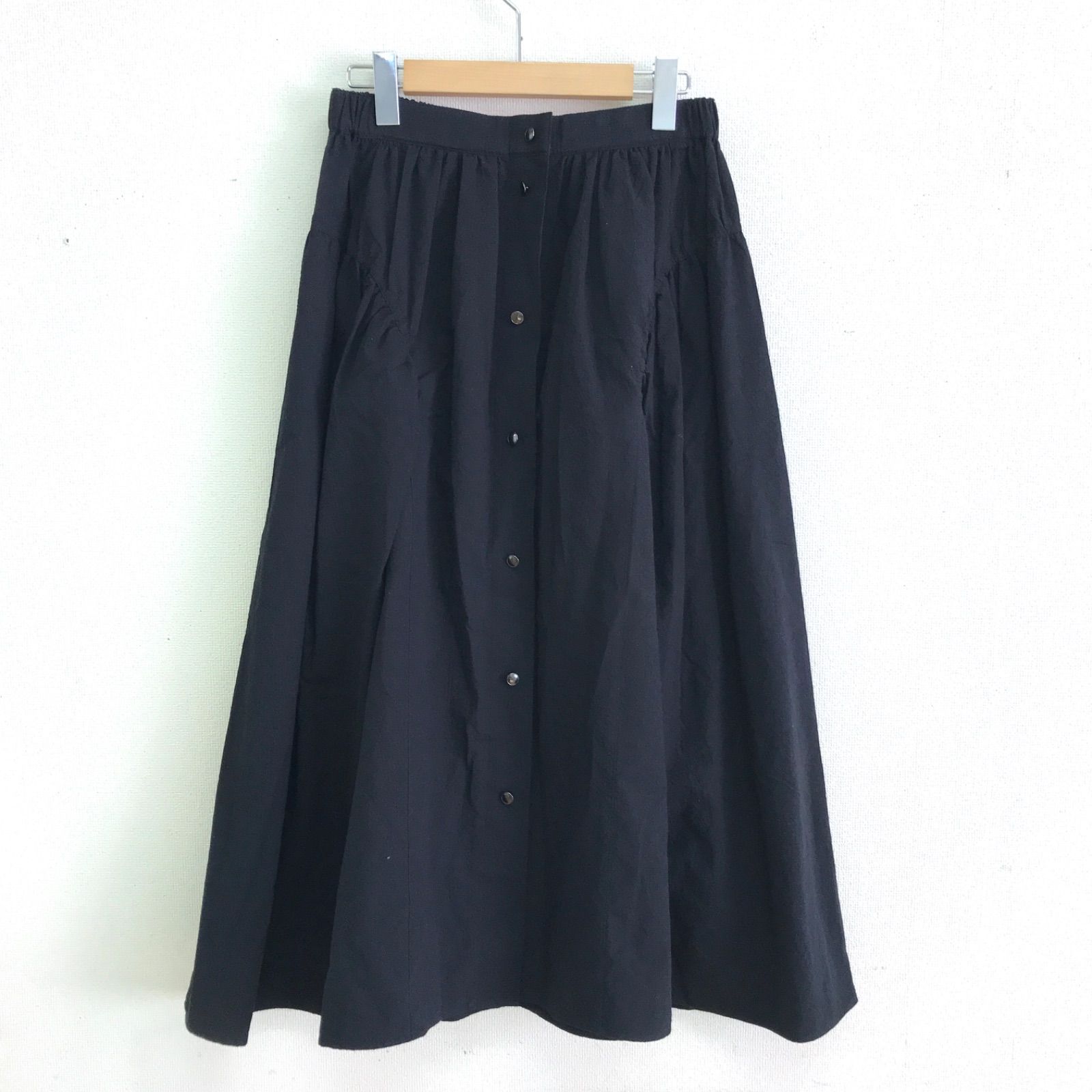 シルバーのボタンやサイドのギャザーディティールがポイントのスカート◎