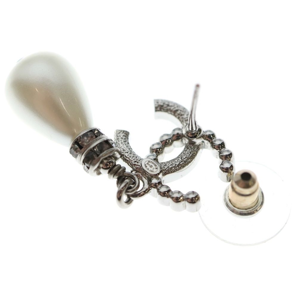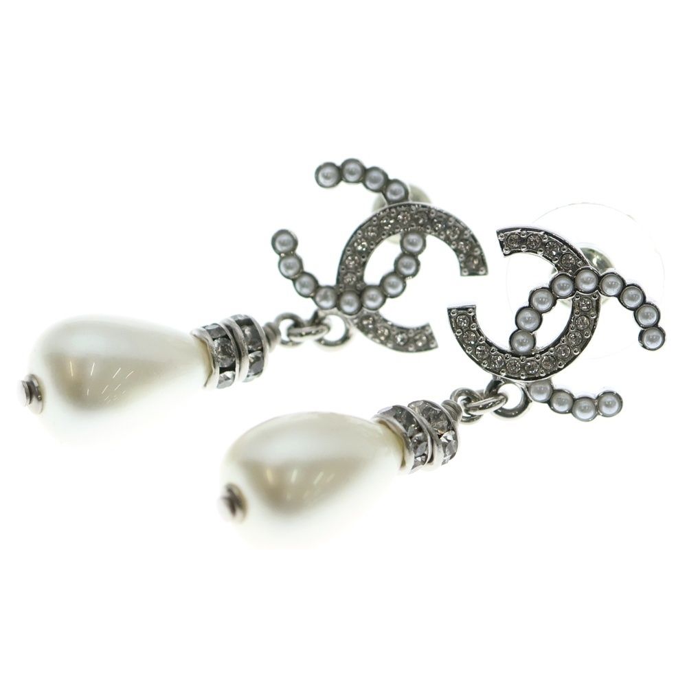 【品名】ココマーク ピアス フェイクパール ラインストーン ピアス B24S ホワイト/シルバー