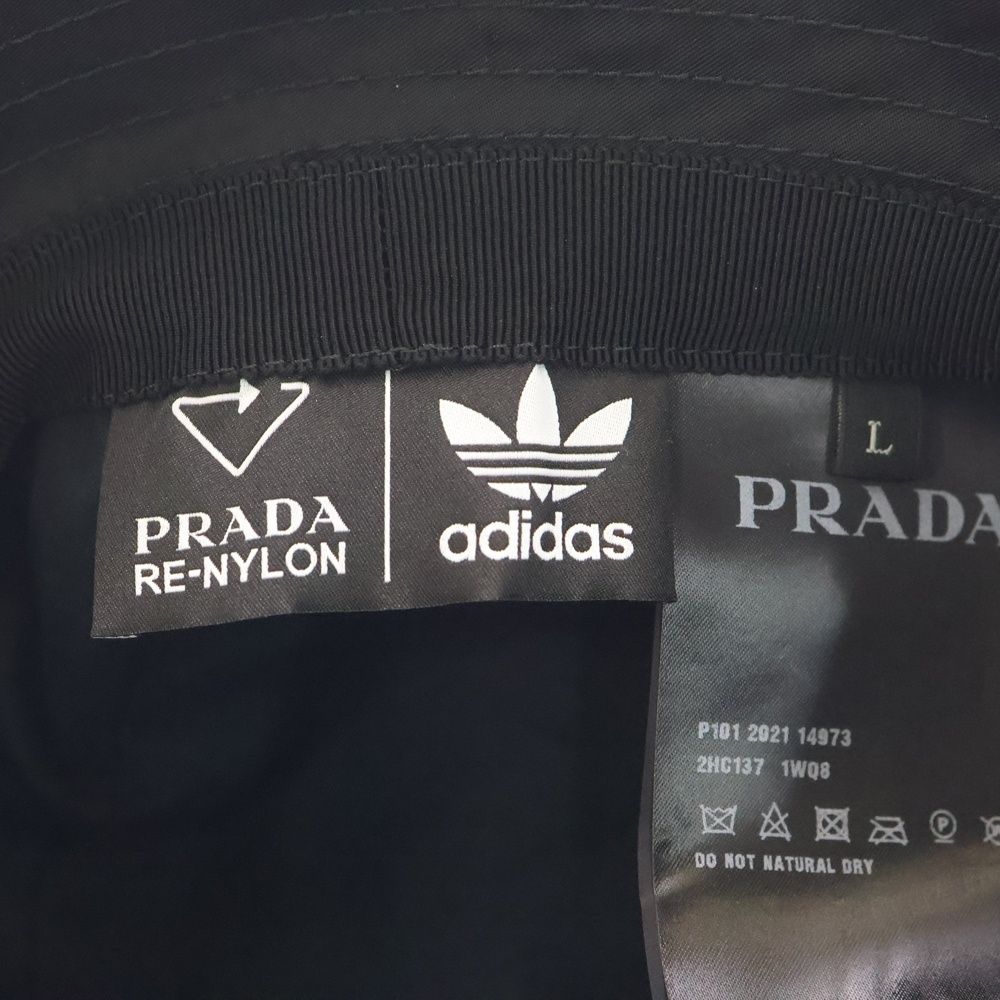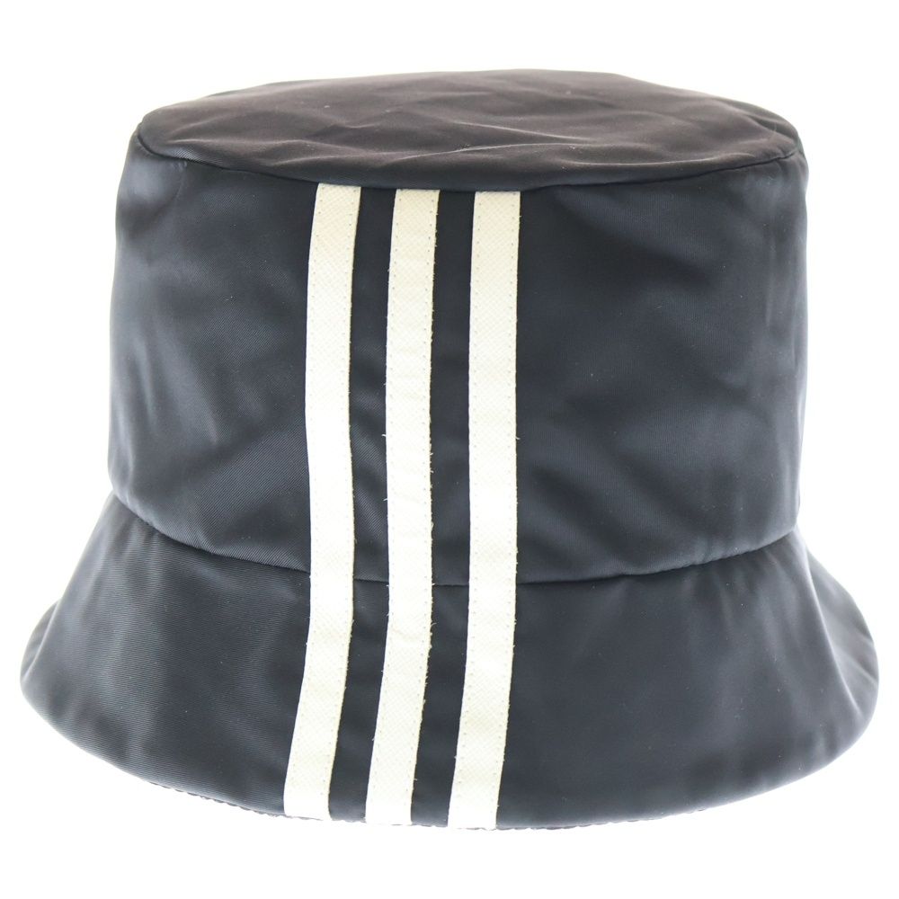 【品名】×adidas RE-NYLON アディダス リナイロン トライアングルロゴプレート サフィアーノレザー ストライプ バケットハット 帽子 ブラック 2HC137