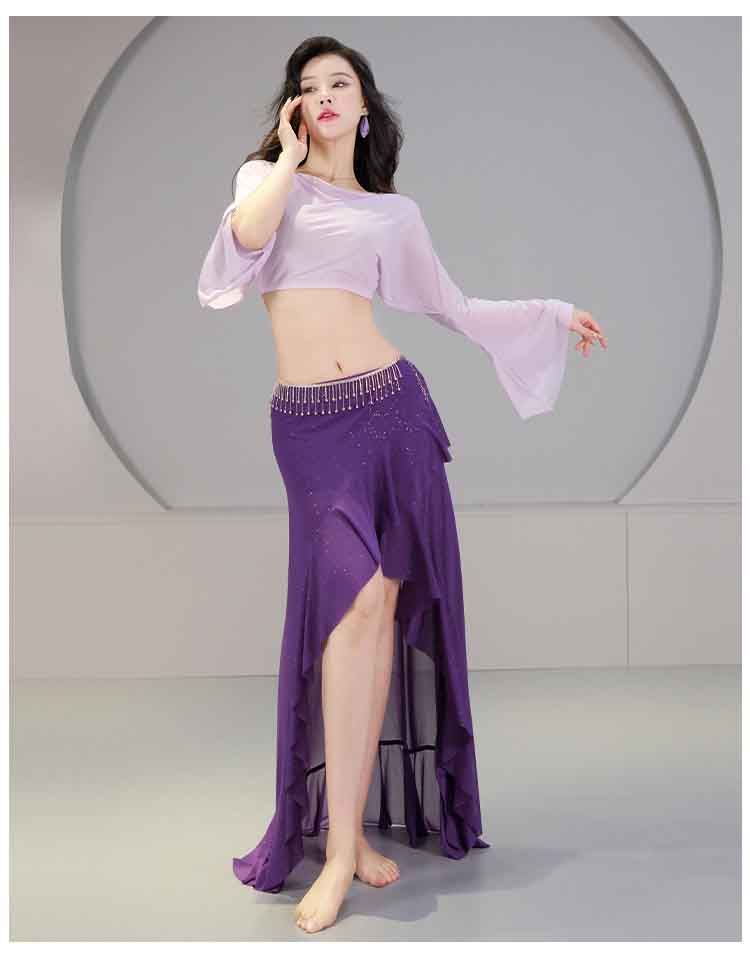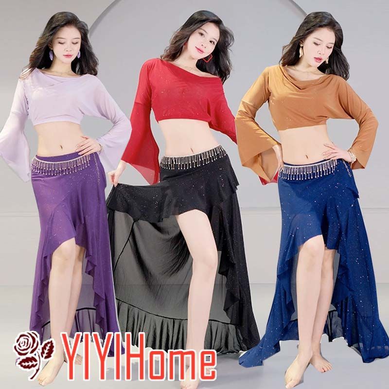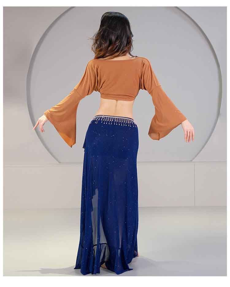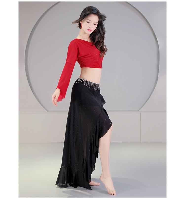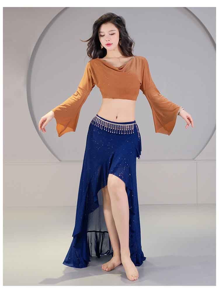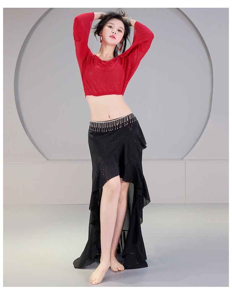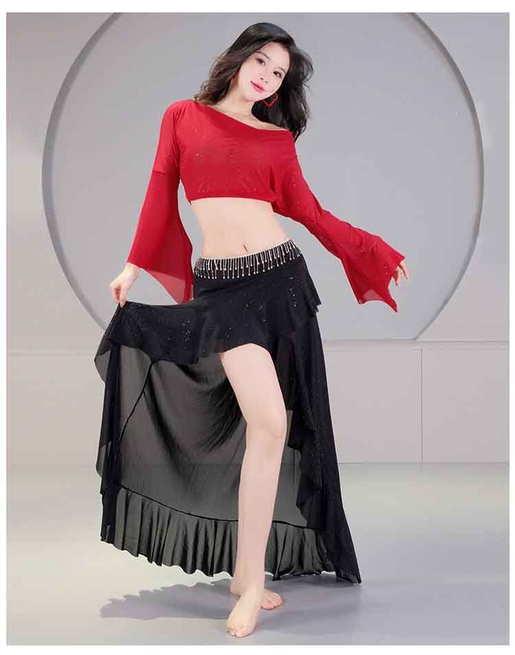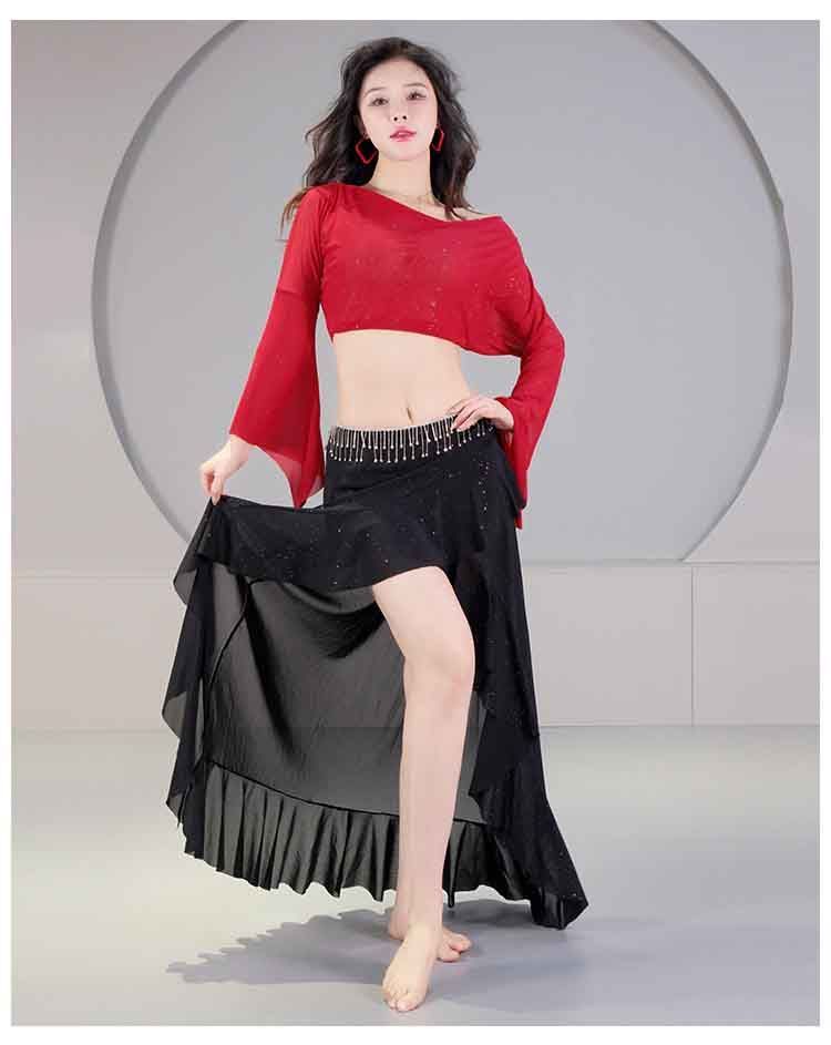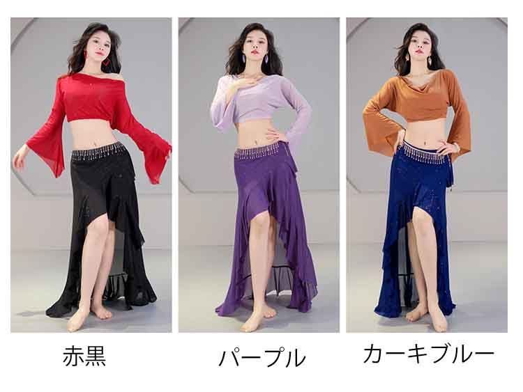 ベリーダンス ダンス衣装 セット ハロウィン コスプレ 仮装 パーティー 余興用 レッスン着 トップス スカート(インナーパンツ付き)2点セット 社交ダンス 発表会 ラテンダンス 演出 団体 キラキラ きらきら