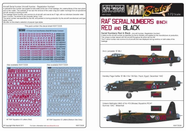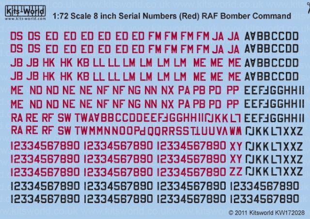 キッツワールド KW172028 1/72 イギリス空軍 爆撃機用 8インチ シリアルナンバーデカール レッド/ブラック .