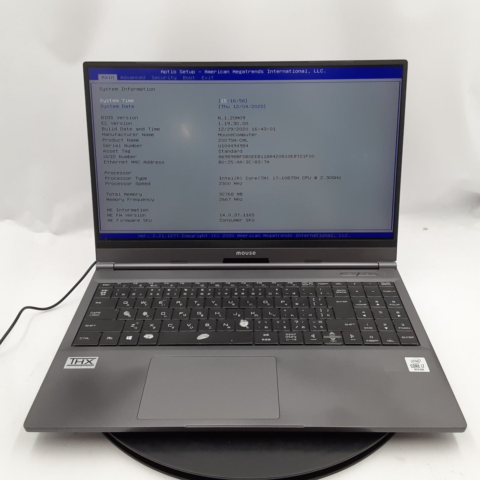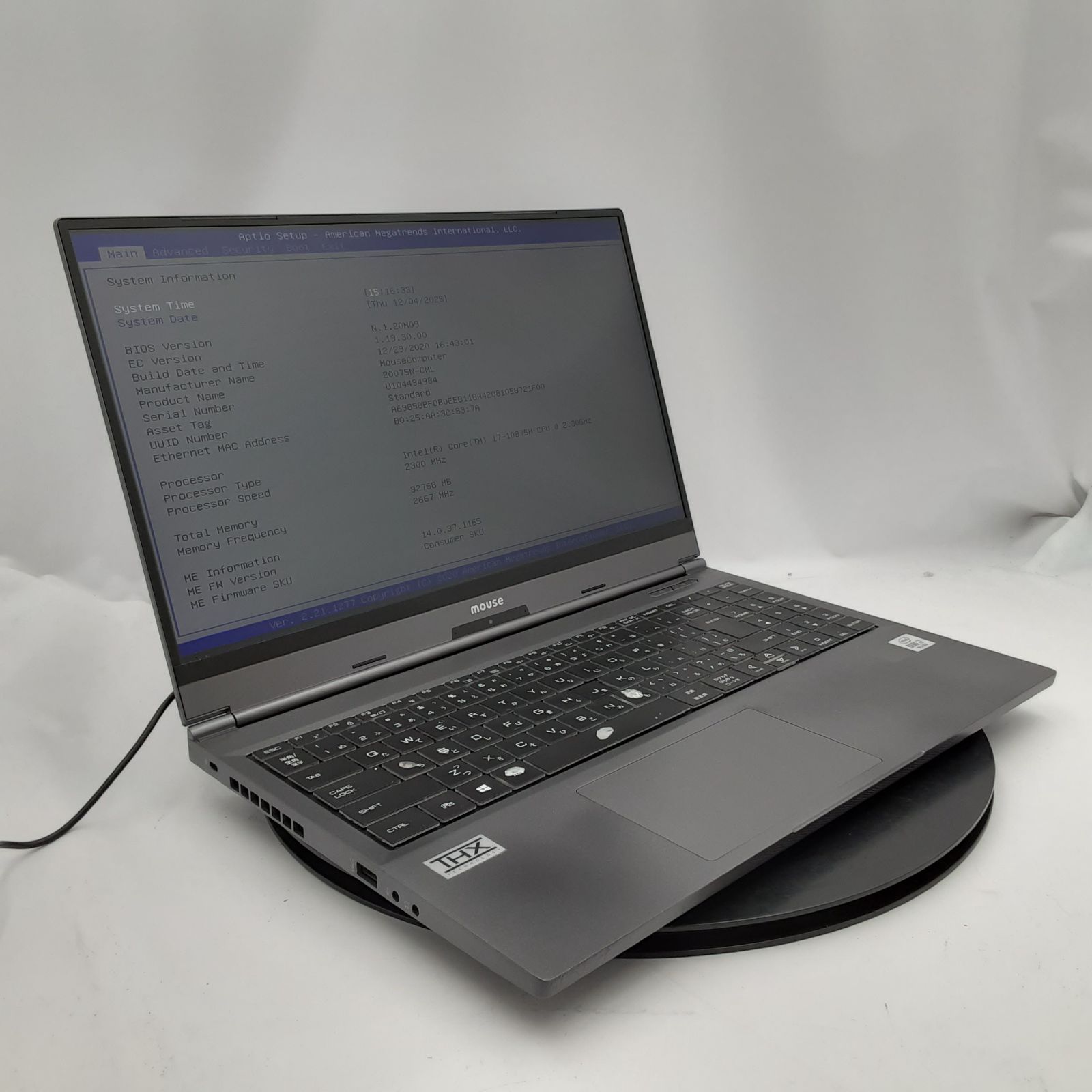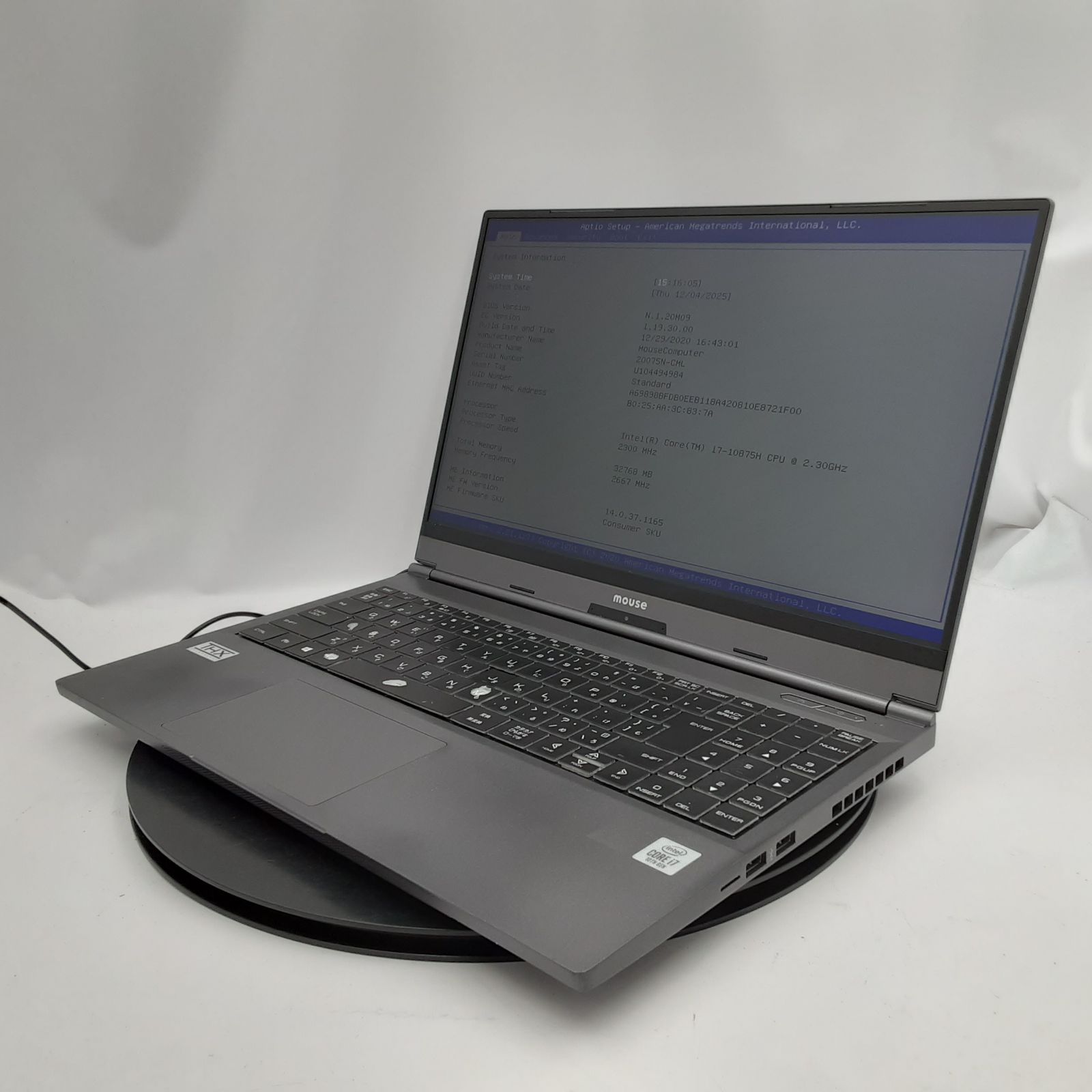 ・CPU… Core i7 10875H / 2.30GHz