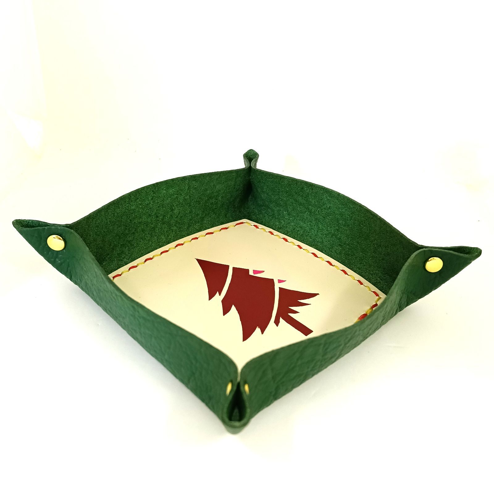 赤緑白のクリスマスカラーで作成いたしました本革のトレー小物入れです。