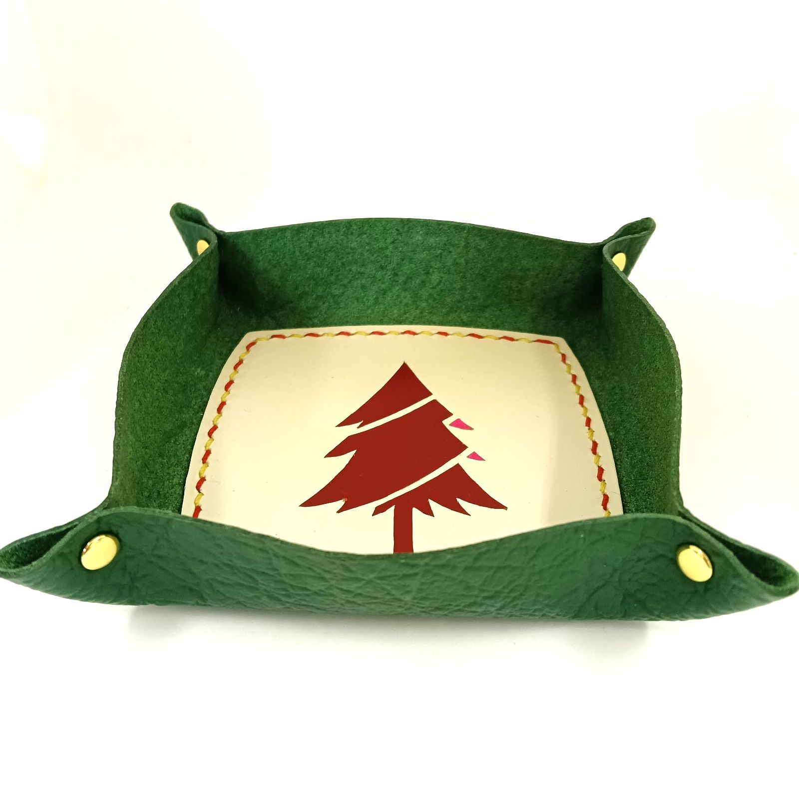 こちらは、本革 クリスマスツリー トレー トレイ 小物入れ ハンドメイド/です。
