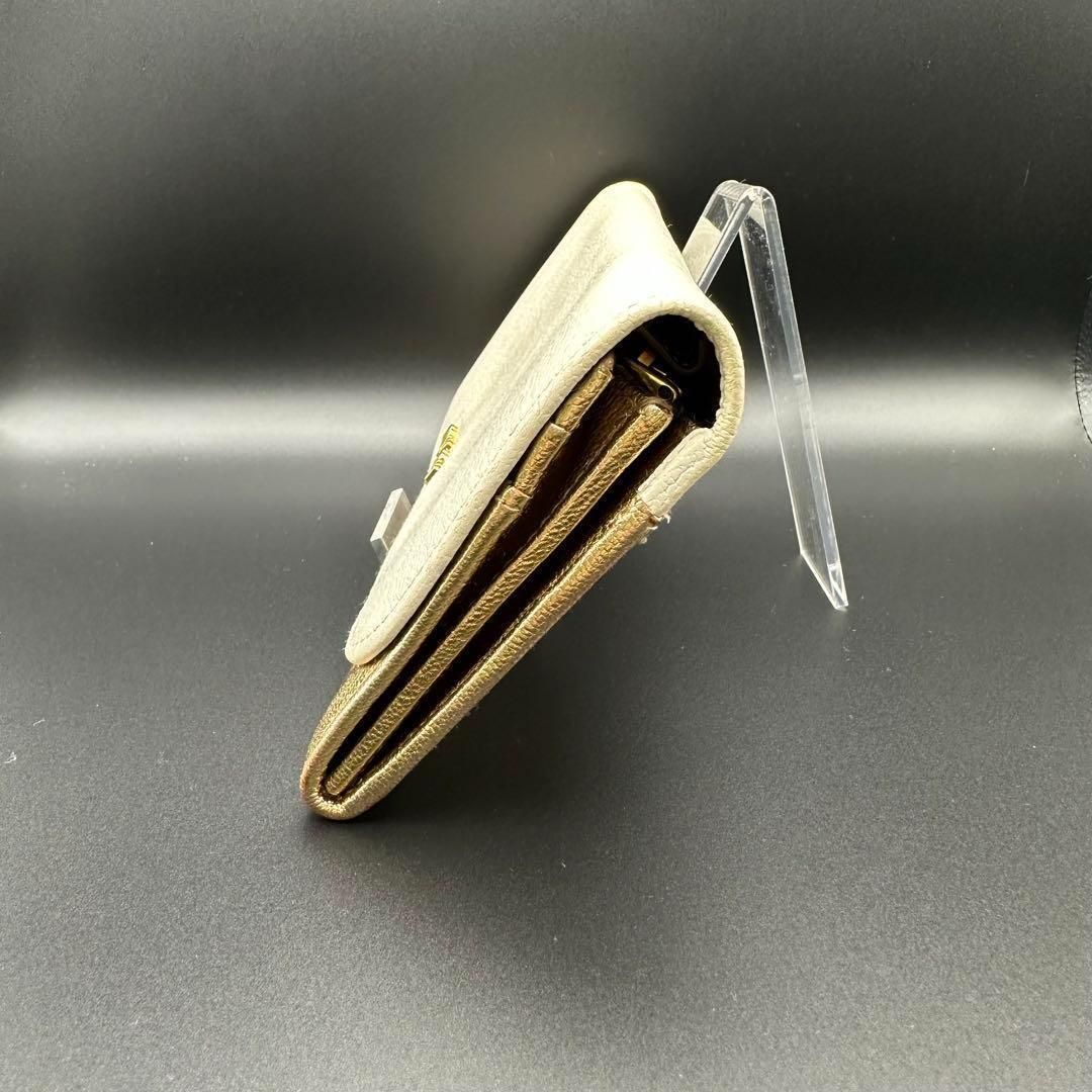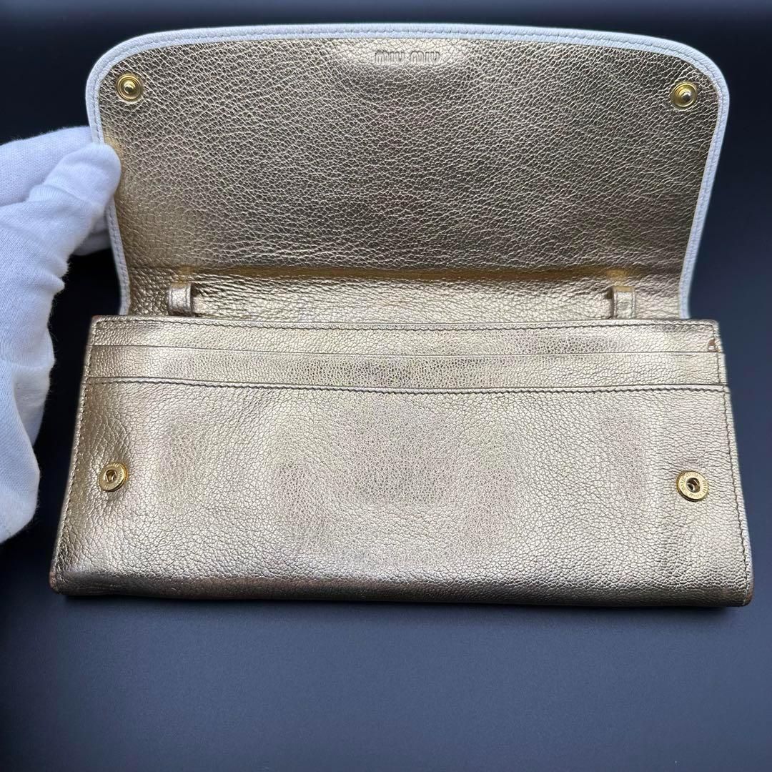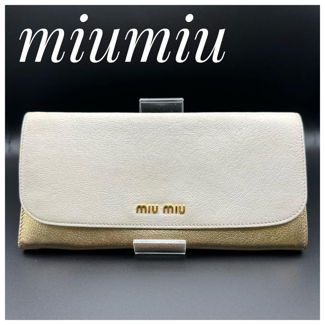 希少 長財布 miumiu ミュウミュウ 二つ折り ゴールド ホワイト 財布 レザー 本革 二つ折り 女性 レディース