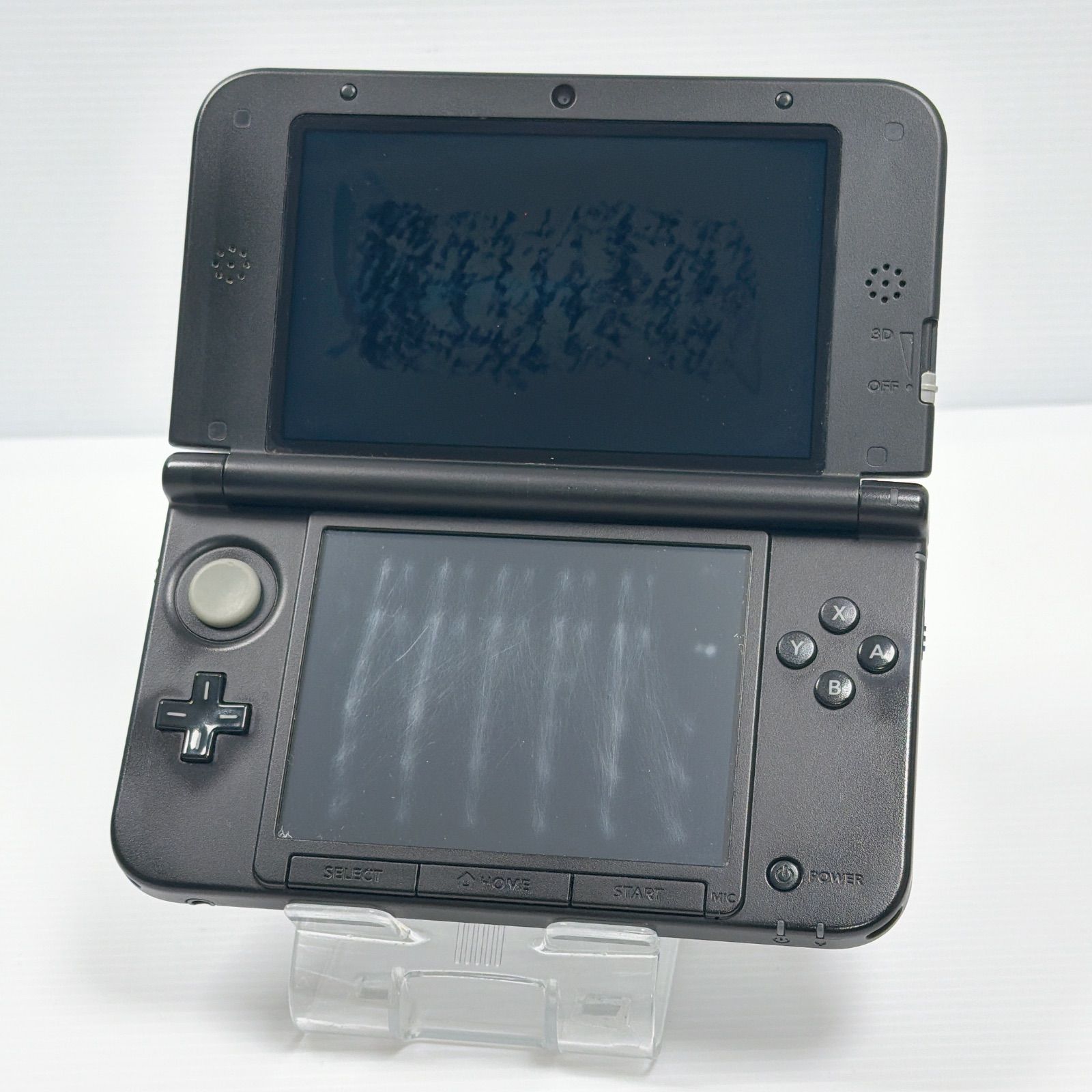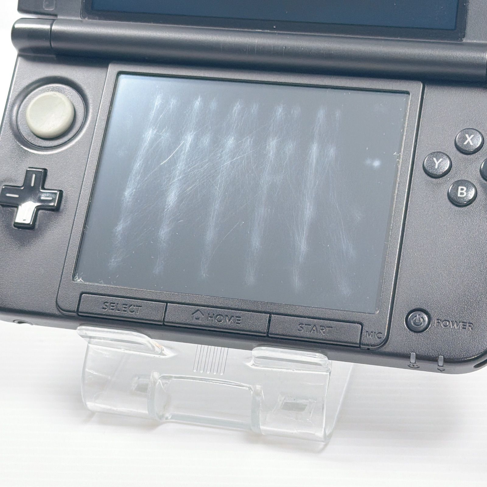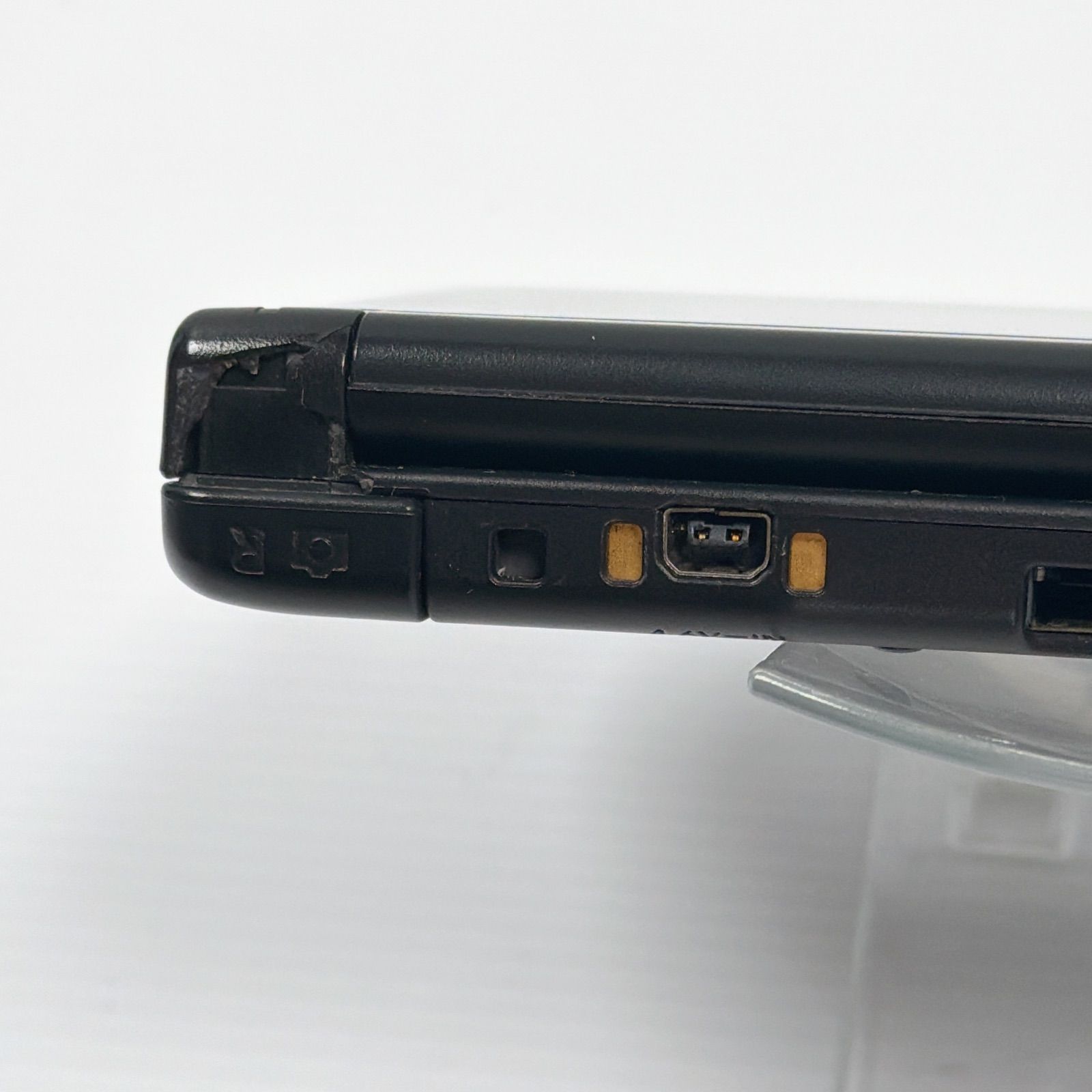 右のヒンジが割れていますが画面の固定はできます。画面や本体に傷が多いです。その分お求めやすい価格に設定しております。