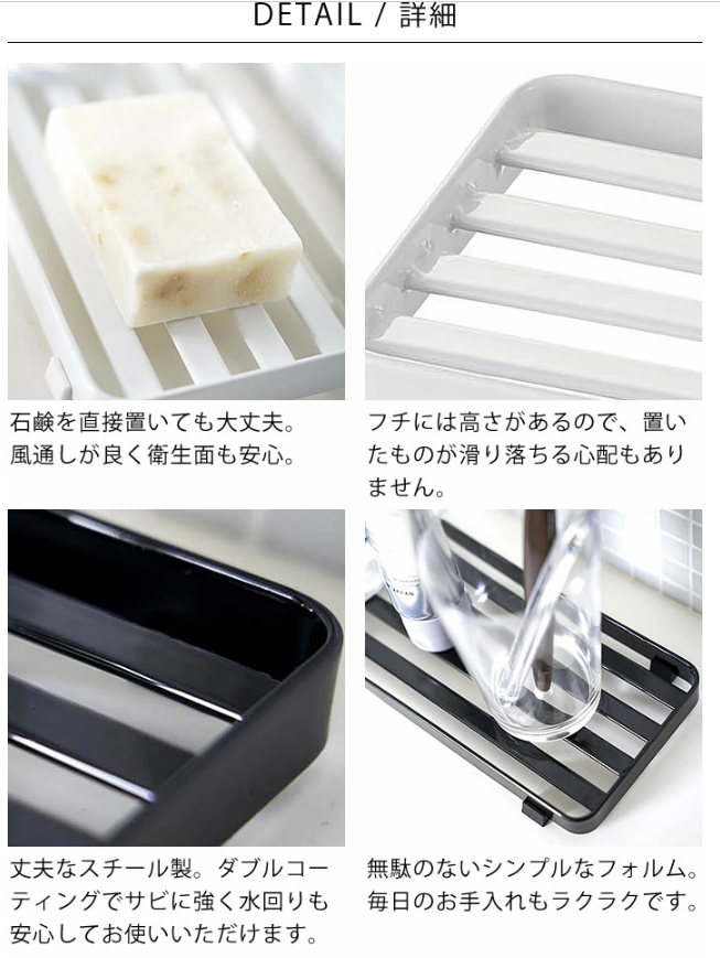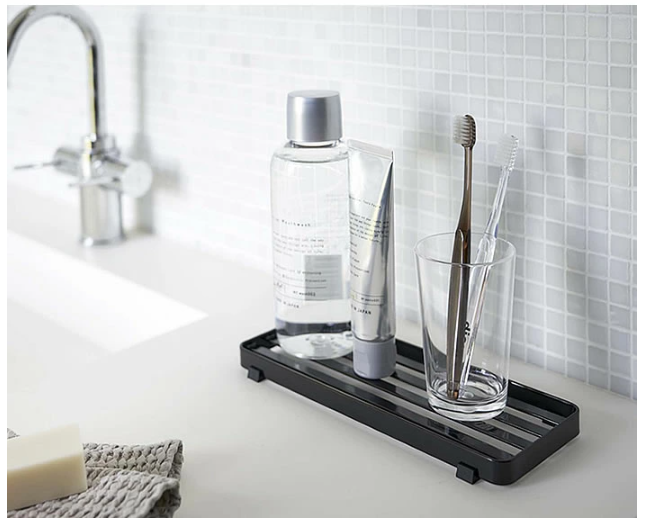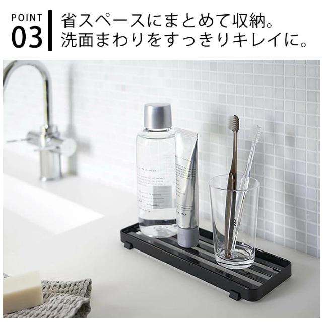サニタリートレー タワー tower スチール 水切り サニタリールーム 洗面 収納 トレー 小物置き バスルーム 石鹸置き ソープトレー おしゃれ シンプル 北欧 省スペース 歯磨き粉 コップ ブラック 4806 山崎実業 yamazaki
