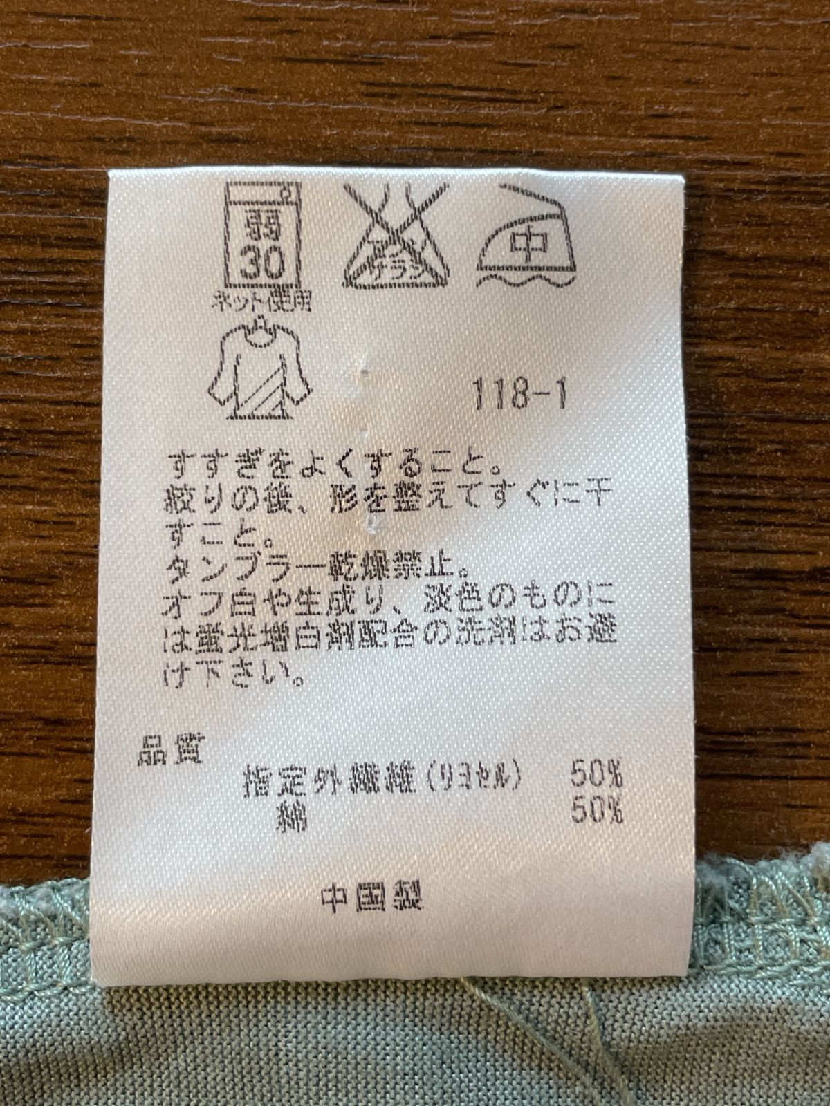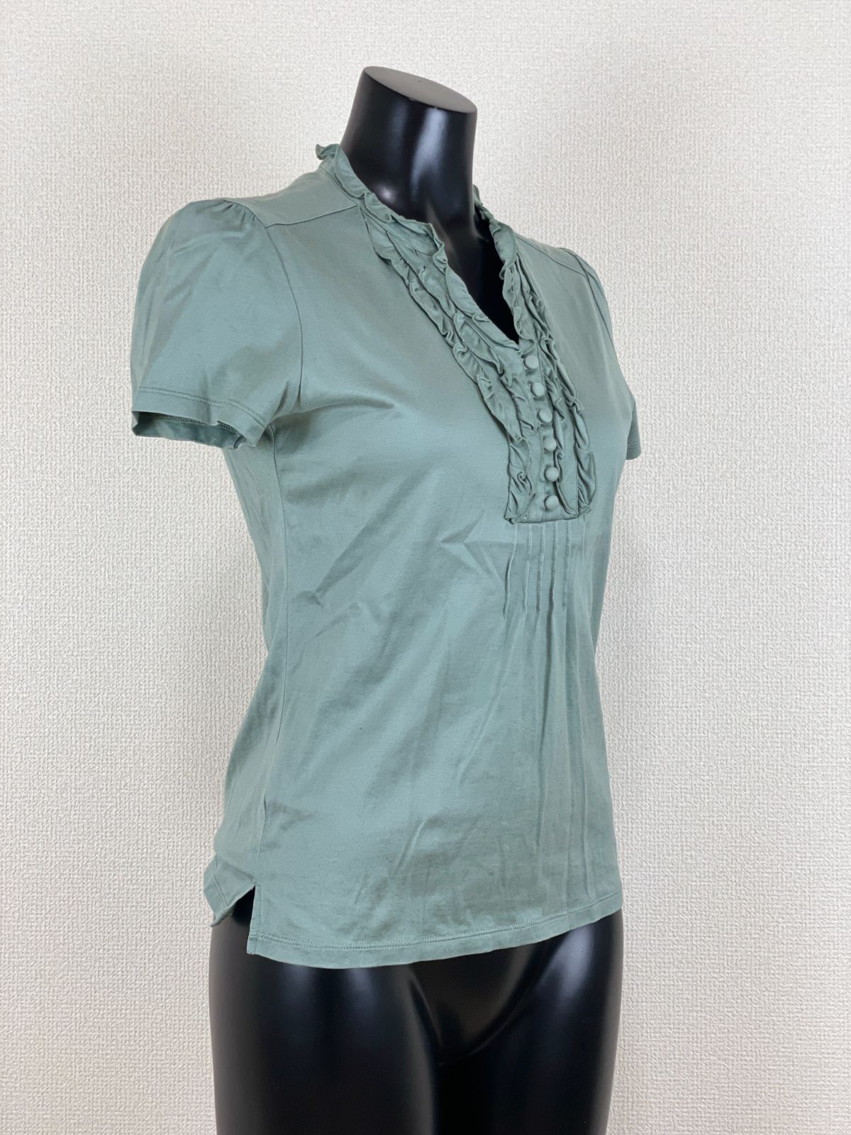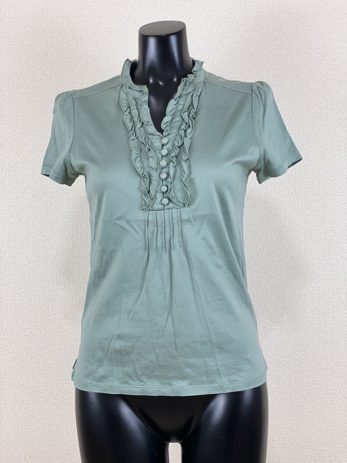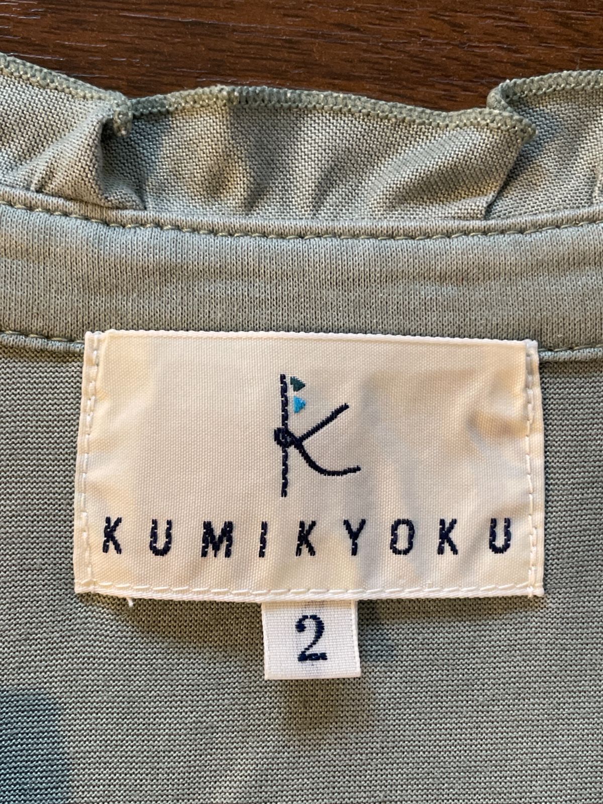 KUMIKYOKU 半袖 グリーン 胸元フリンジ ST0010