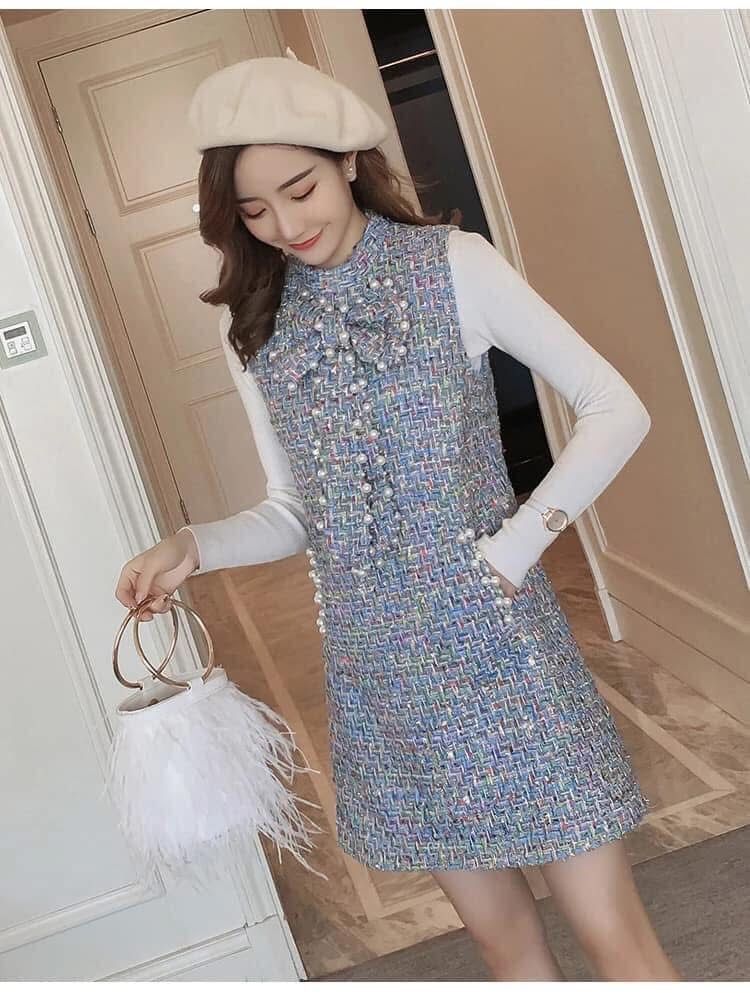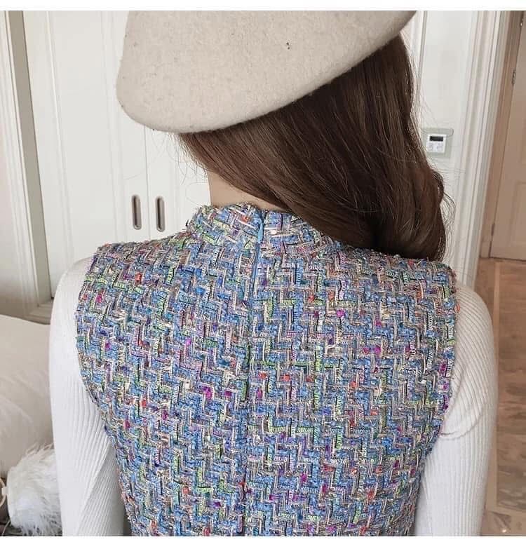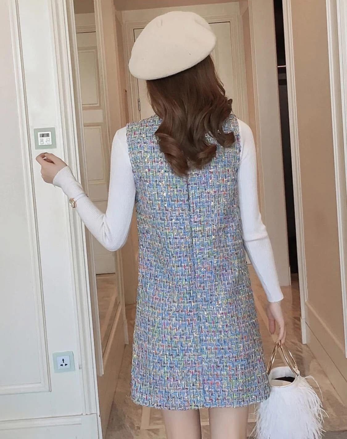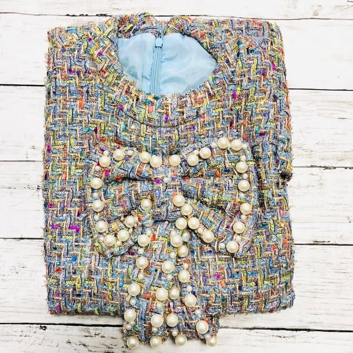 海外製品 レディース キャバ系 お嬢様系 スレンダー ブルー ワンピース ツイード イベント パーティー お出掛け