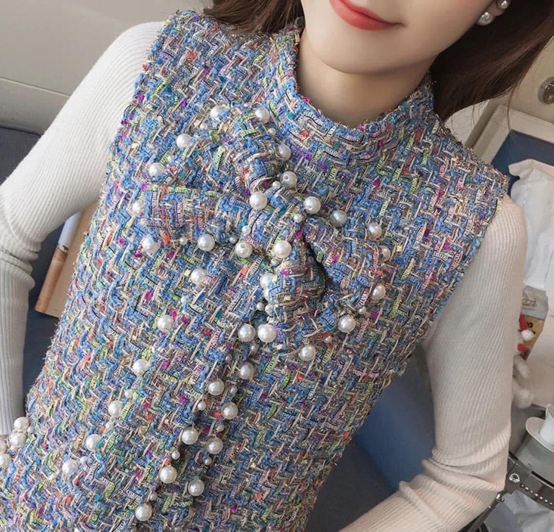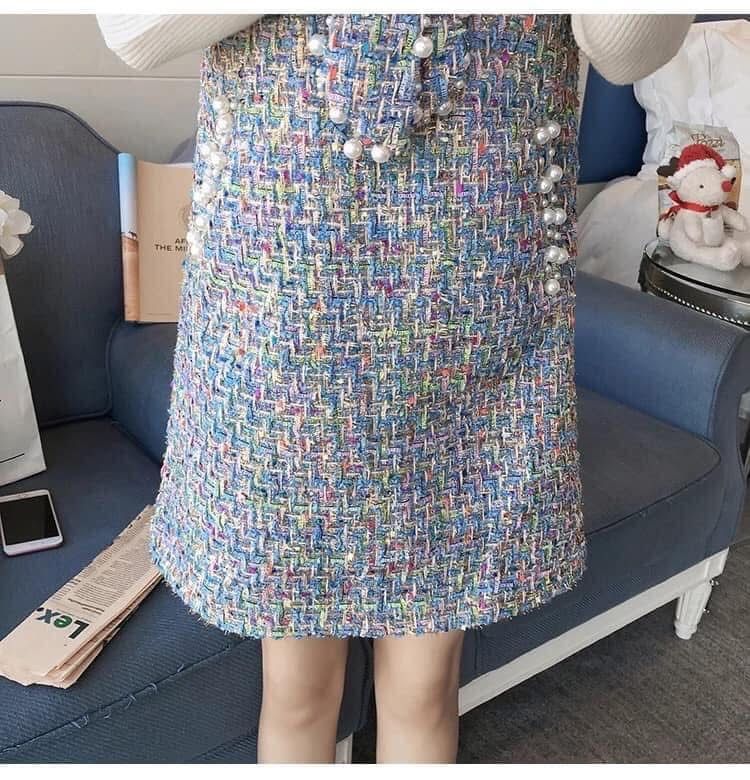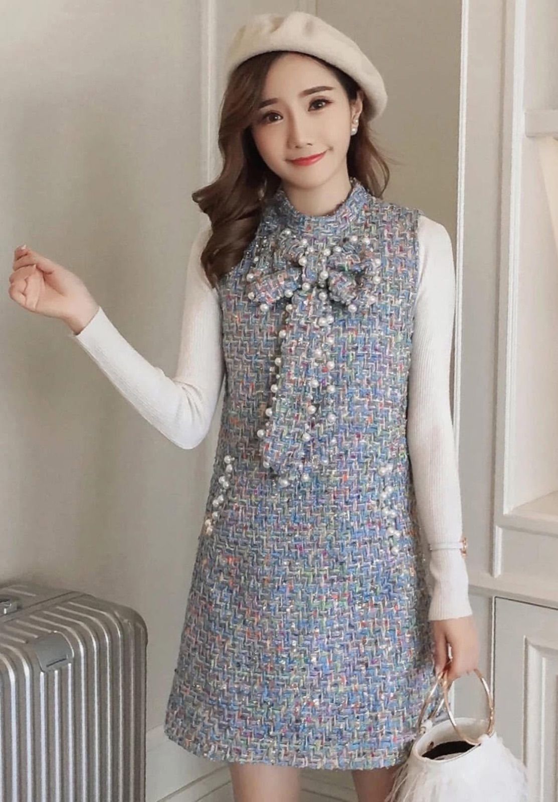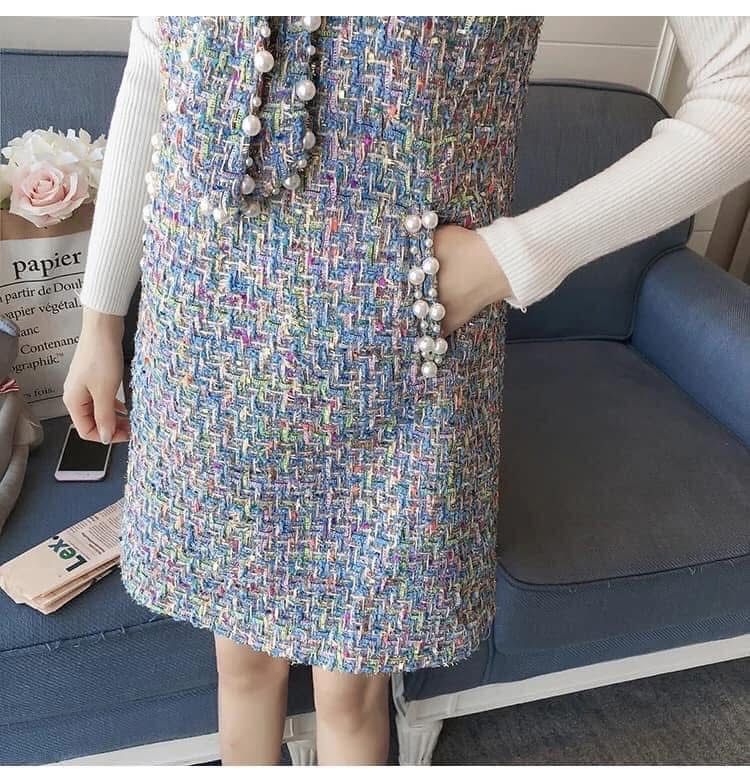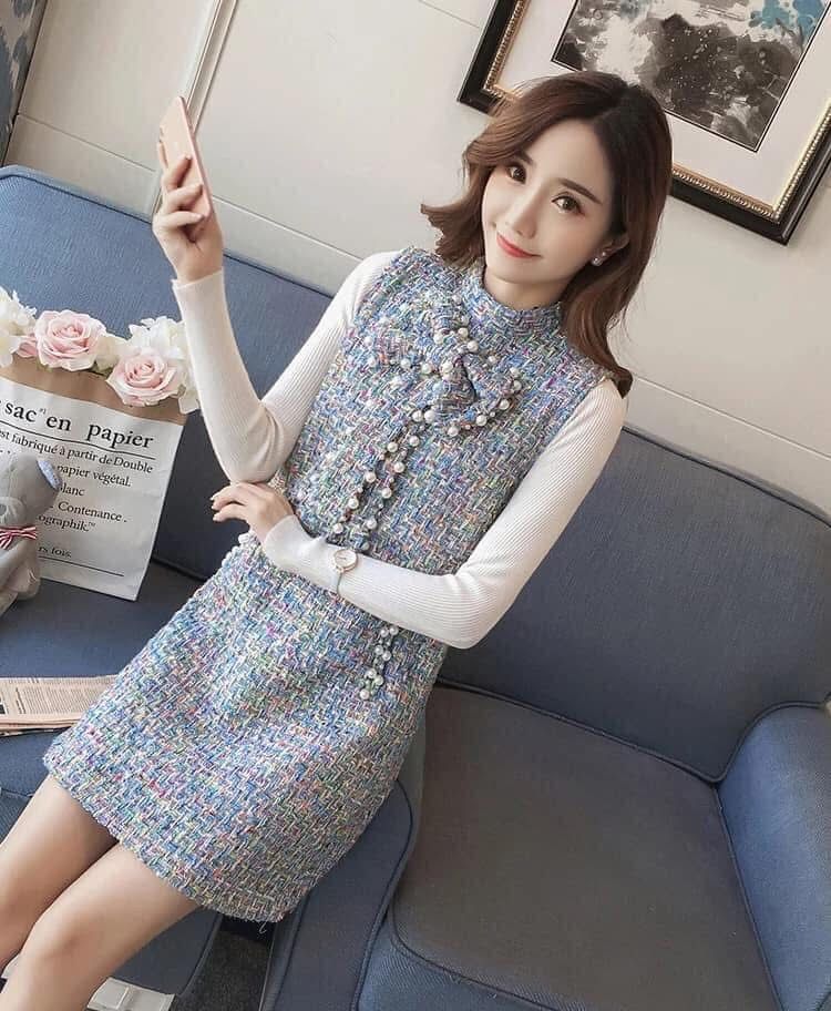 海外製品 レディース キャバ系 お嬢様系 スレンダー ブルー ワンピース ツイード イベント パーティー お出掛け