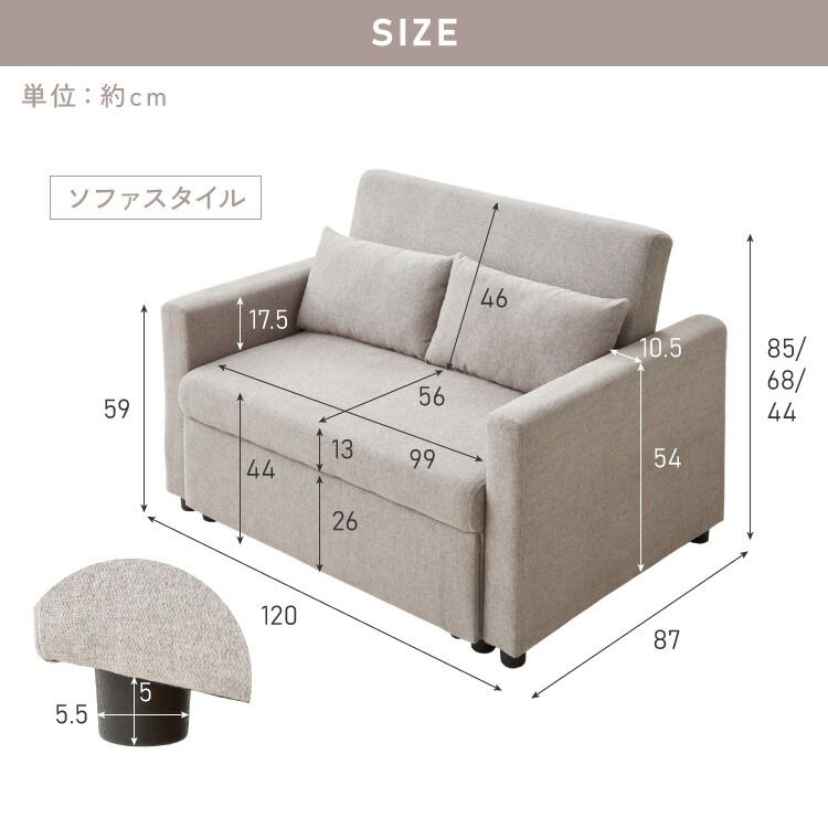 ソファタイプ:120×87×85cm 座面高さ44cm