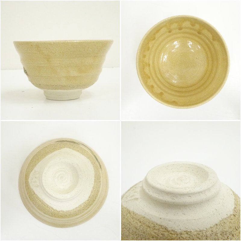青木九仁博造 黄瀬戸茶碗(共箱) 茶道 抹茶 おしゃれ 抹茶茶碗 抹茶碗 和食器 レトロ 茶器 骨董 茶わん 茶会 茶の湯 5月 春