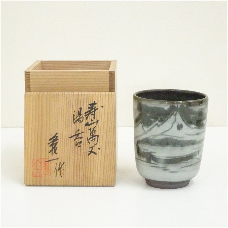 篠田義一造 寿山萬丈湯呑(共箱) 湯飲み 湯呑み 湯のみ おしゃれ かわいい 茶道具 茶器 来客 お茶 旅館 和風 雑貨 レトロ 食器