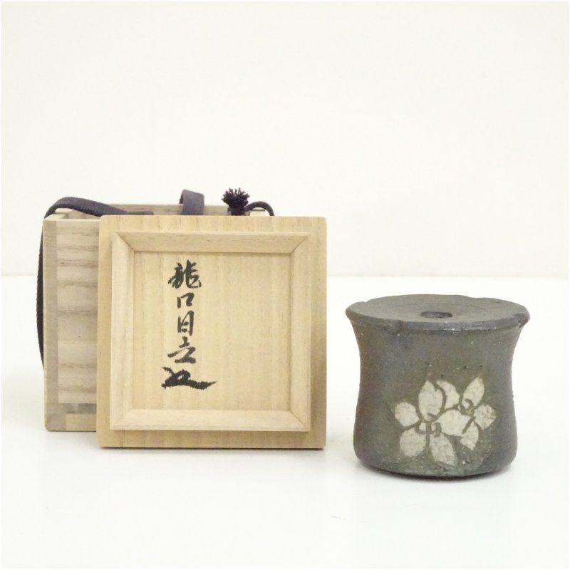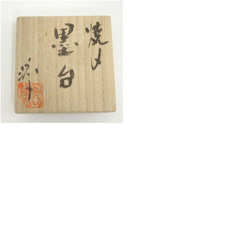 風ン谷淳窯 野村淳二造 焼締墨台蓋置(鎌倉龍口寺 新倉日立書付)(共箱) 蓋置き 茶道 道具 茶道具 おしゃれ ふたおき 茶器 抹茶 骨董 お茶 台 茶会 茶席 茶事 茶の湯