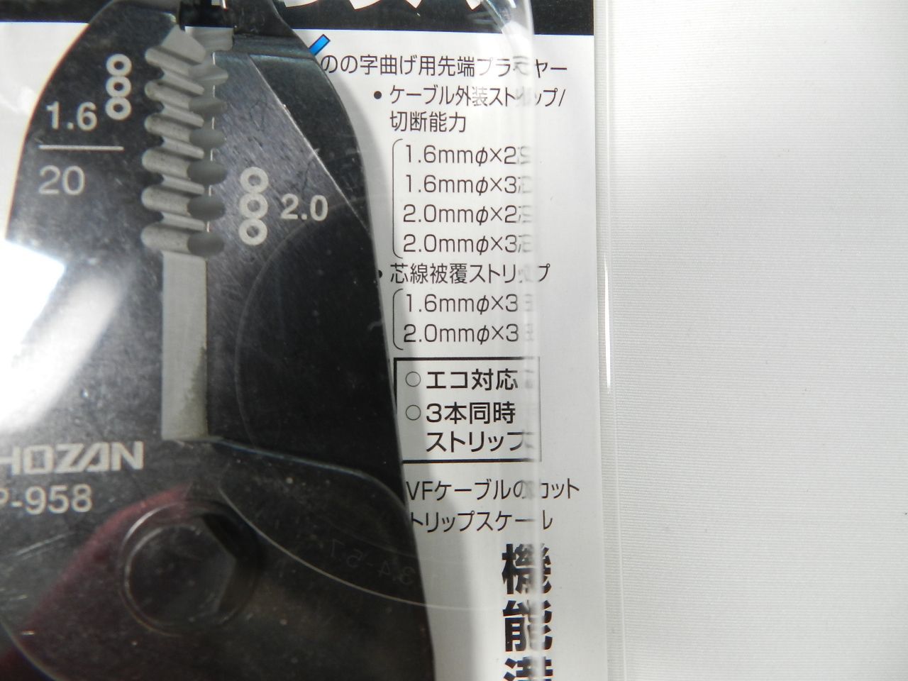 ・芯線の3本同時ストリップに対応。「測る」「剥く」「切る」「のの字曲げ」作業がこの工具一本で可能です。