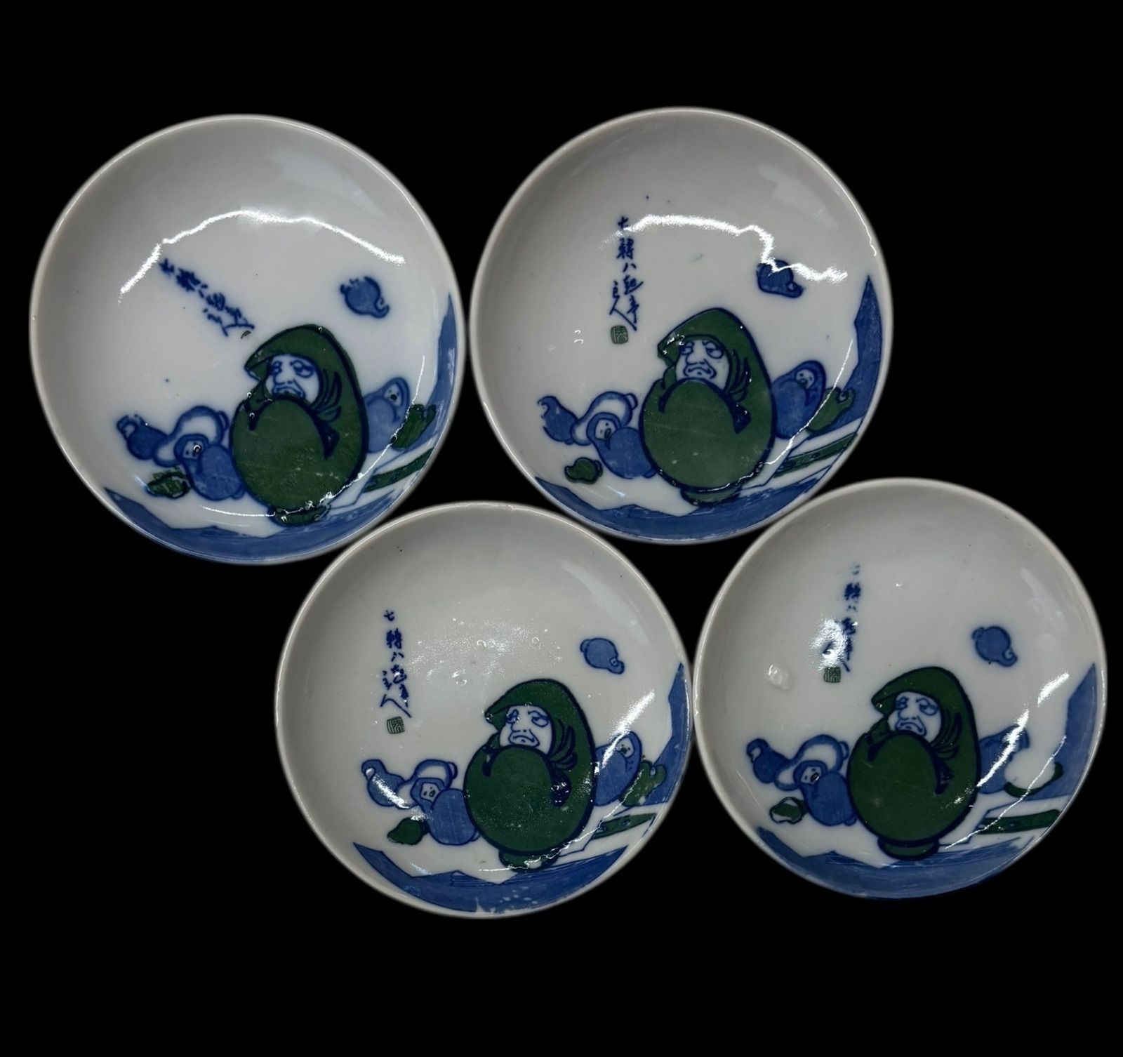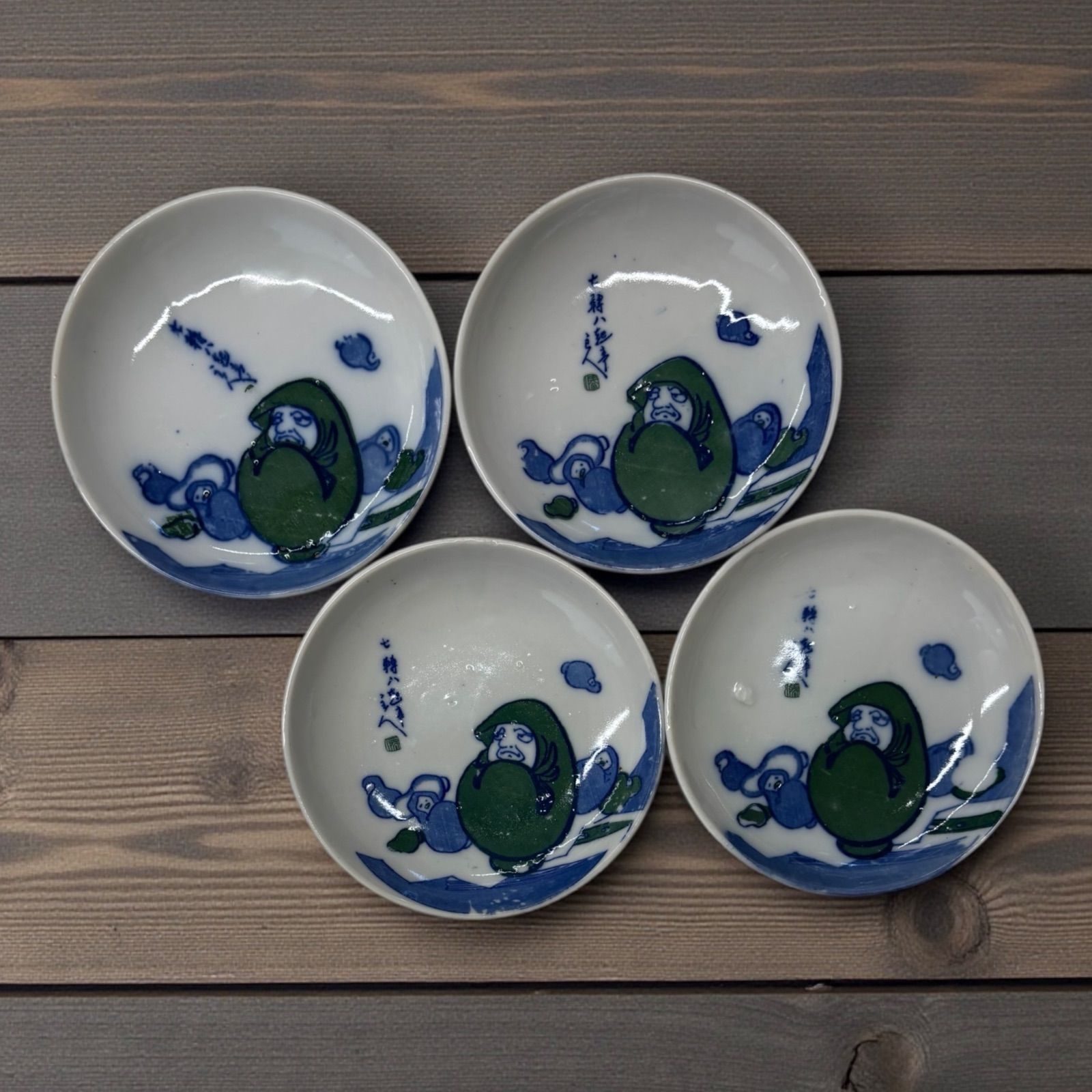 かわいらしい達磨のデザインが施された小皿4客セットです。