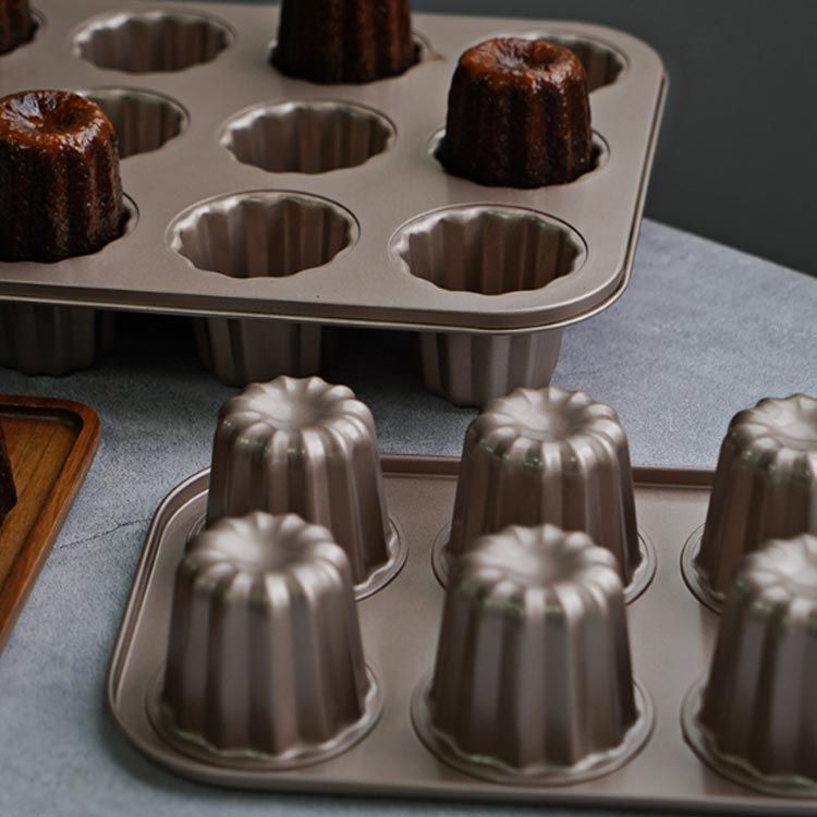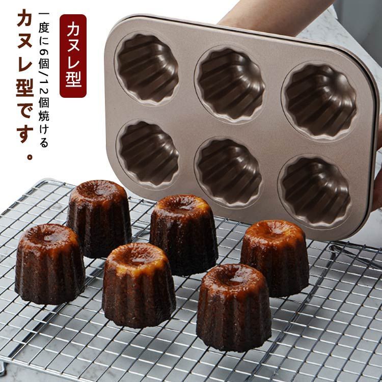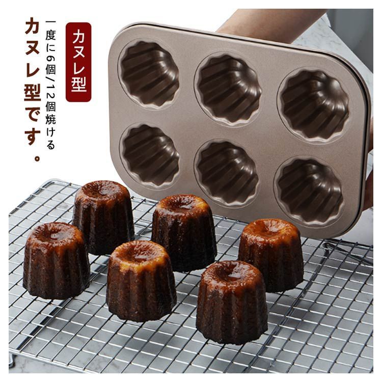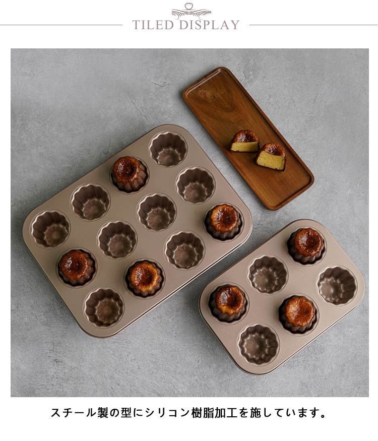 カヌレ焼き上げは、独特のシャンペンゴールドの配色があっで、特殊なカヌレのデザインに合わせて、見た目がきれいで、使いやすくなっています。