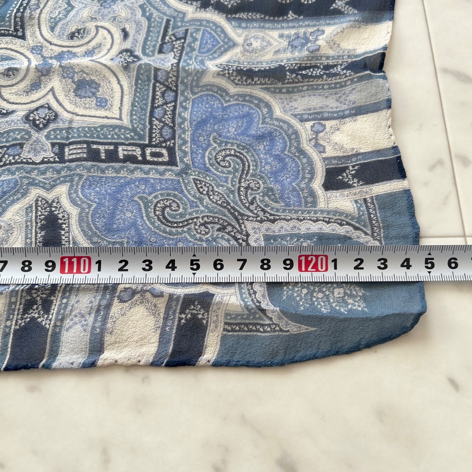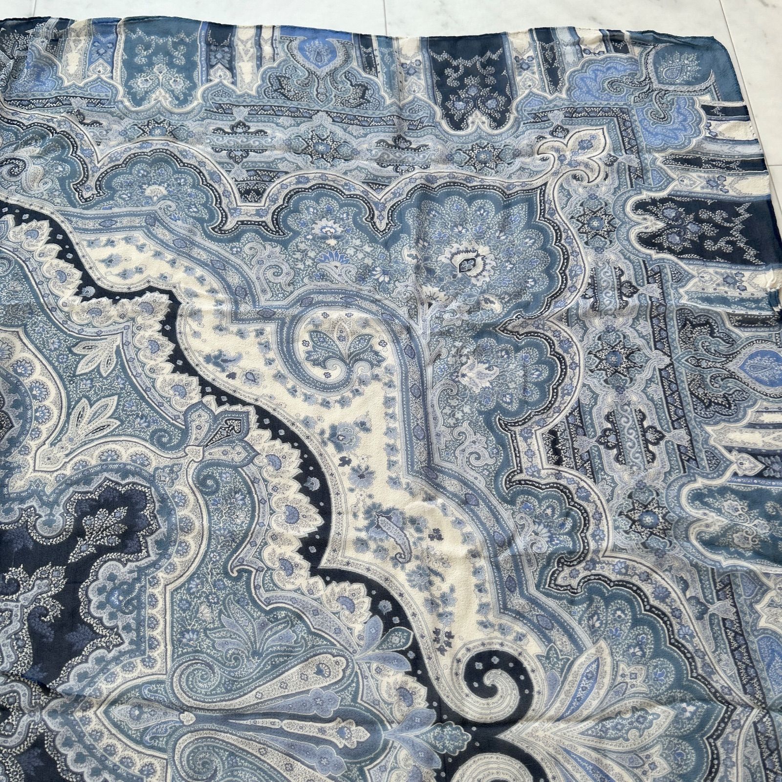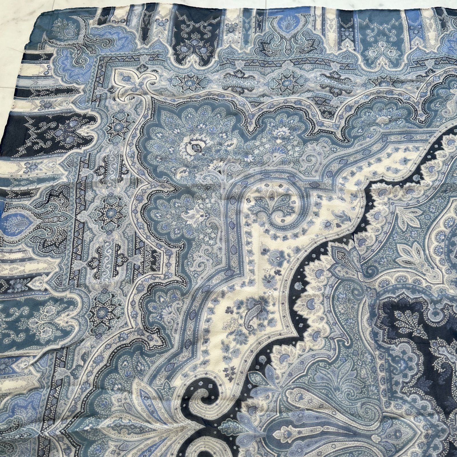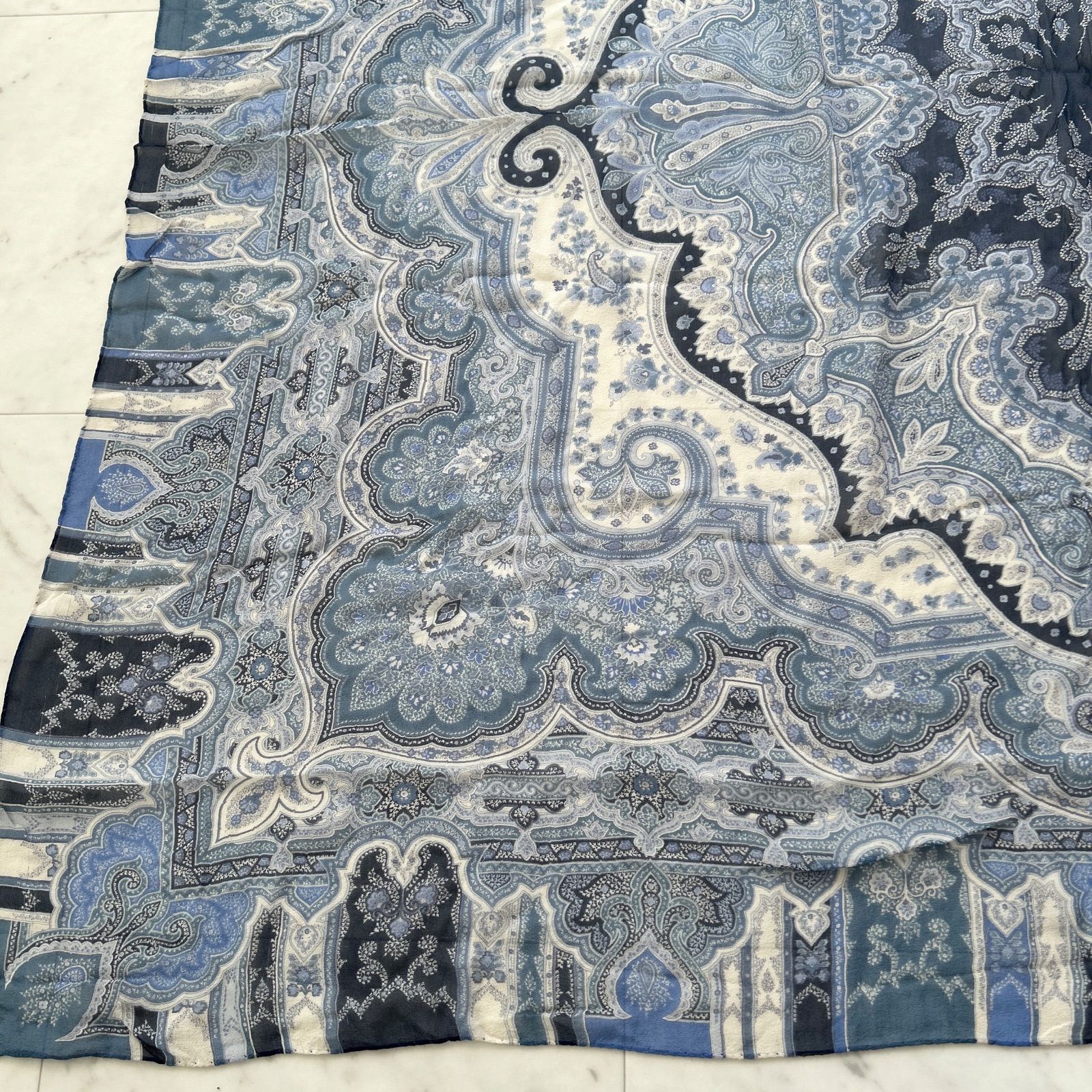 ETRO エトロ 大判スカーフ ストール ペイズリー柄 ブルー系 シアー 透け感
