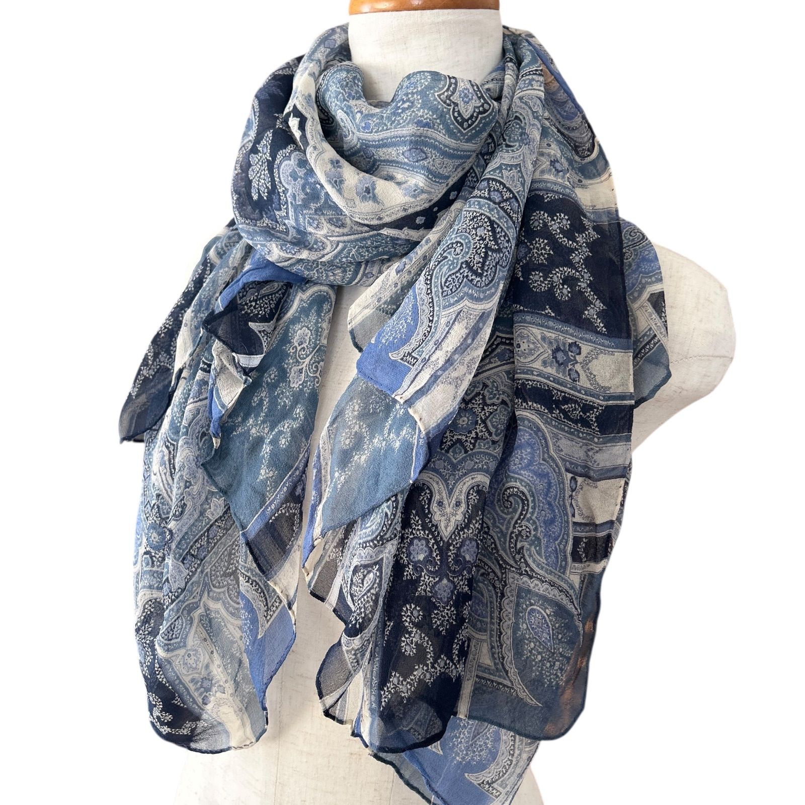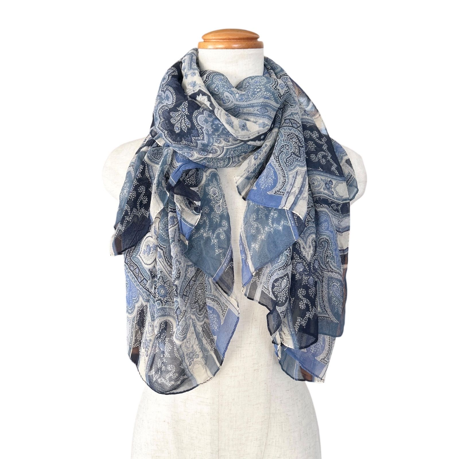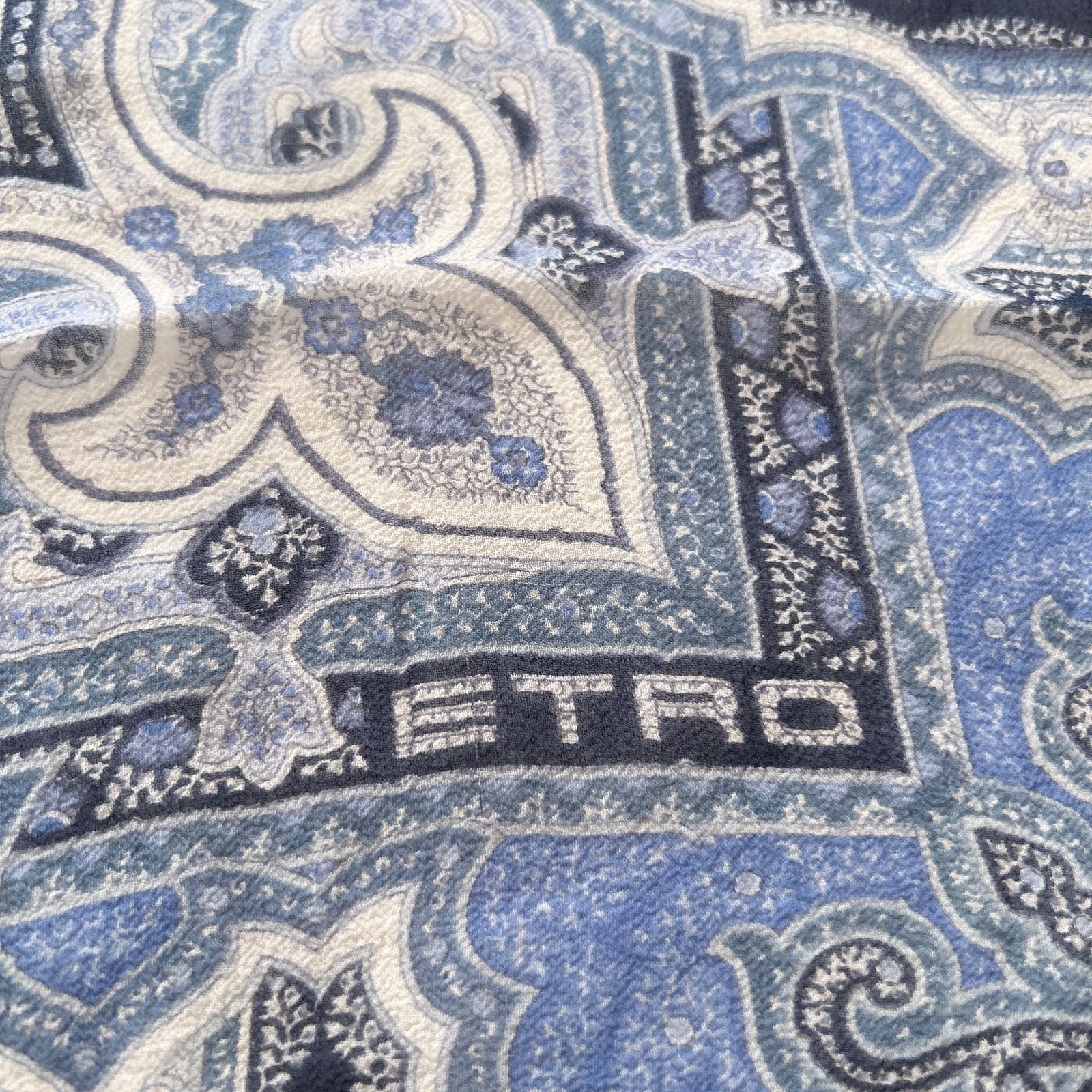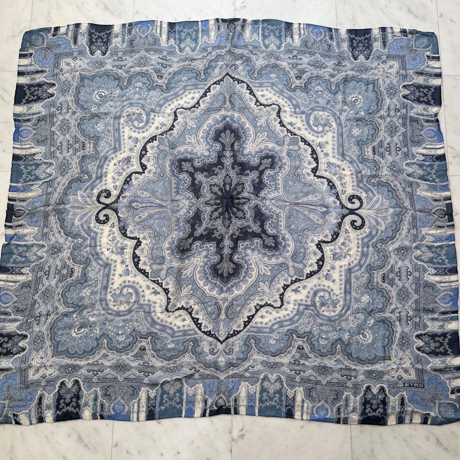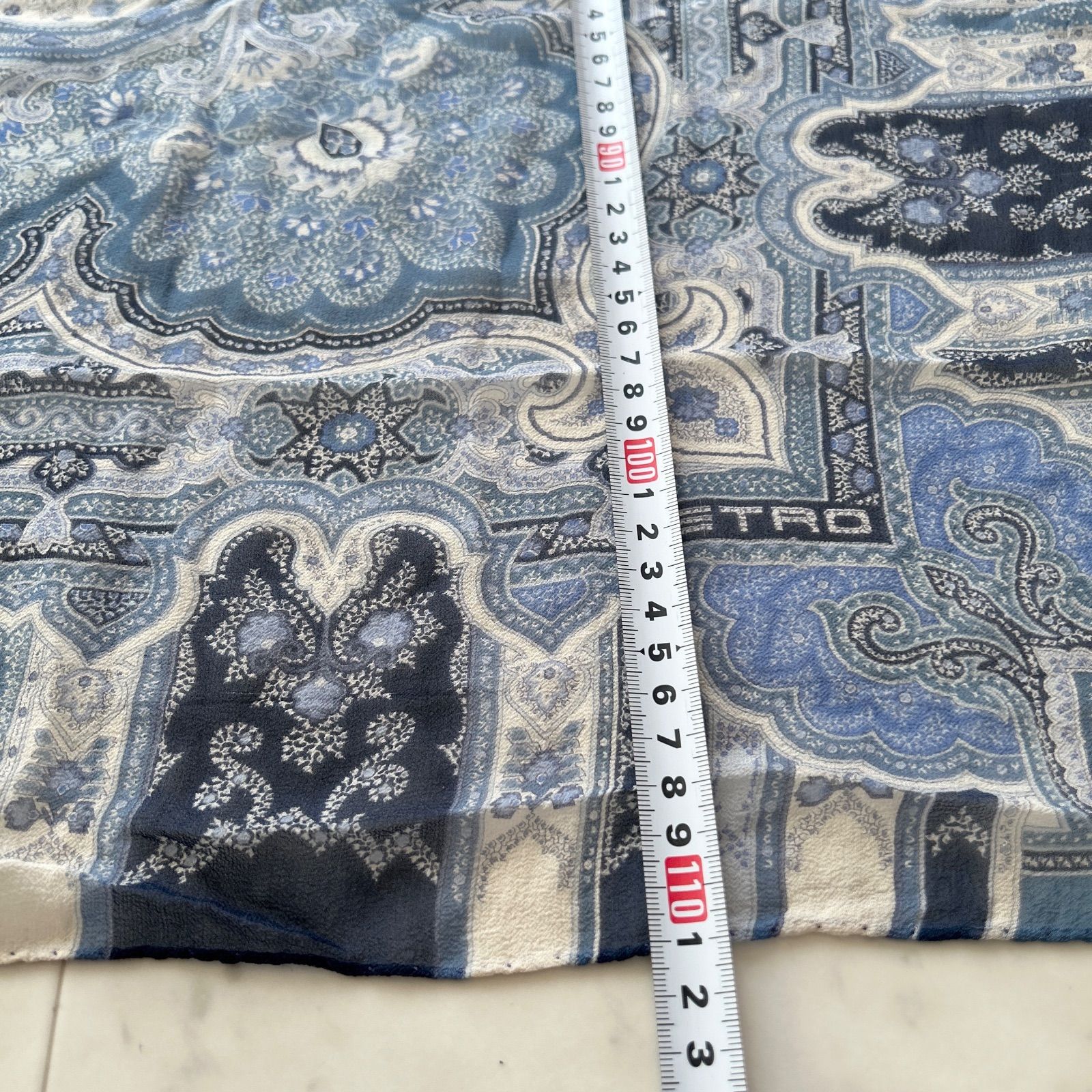 ETRO エトロ 大判スカーフ ストール ペイズリー柄 ブルー系 シアー 透け感