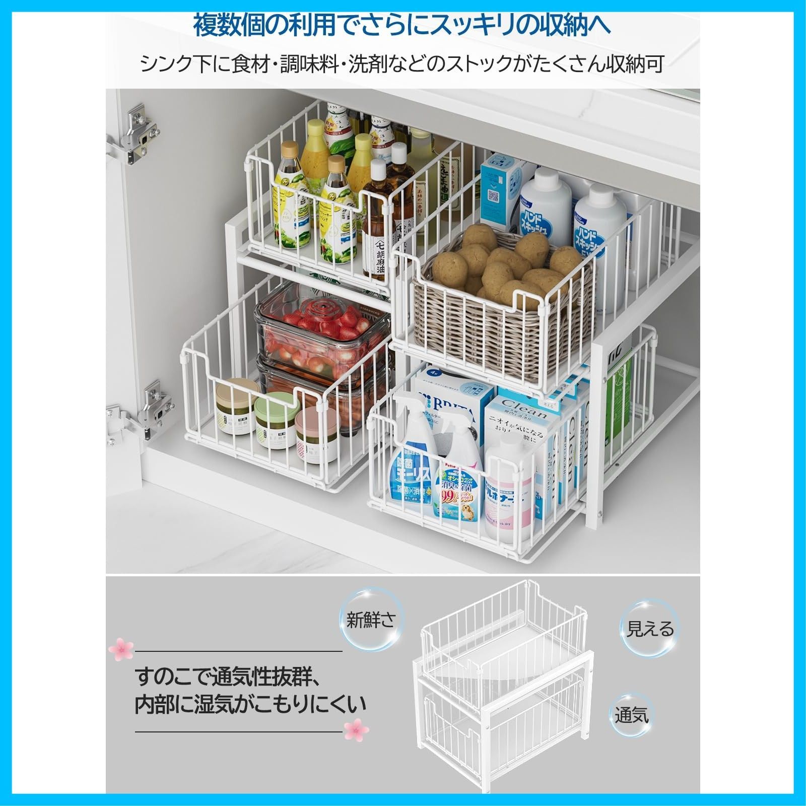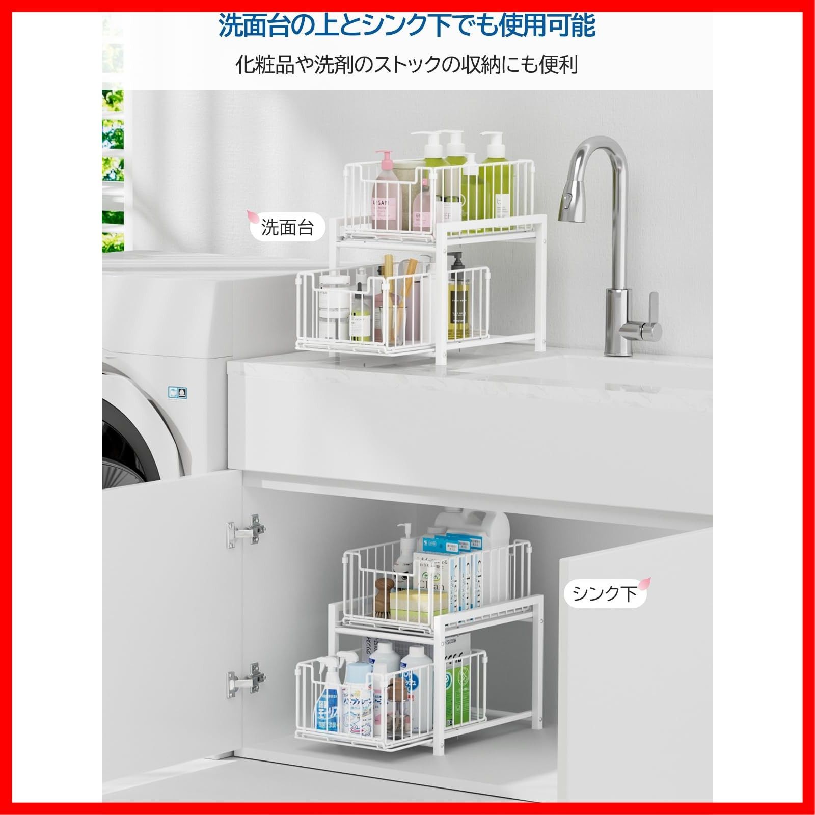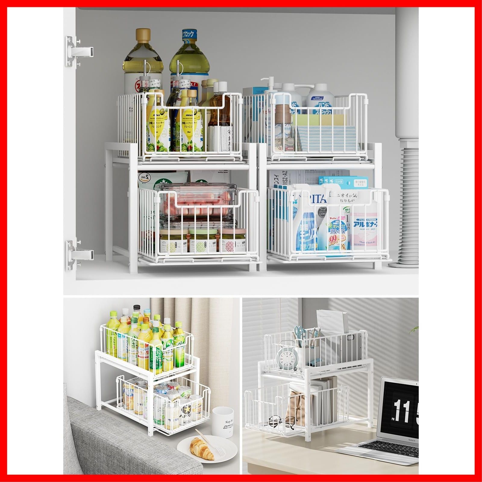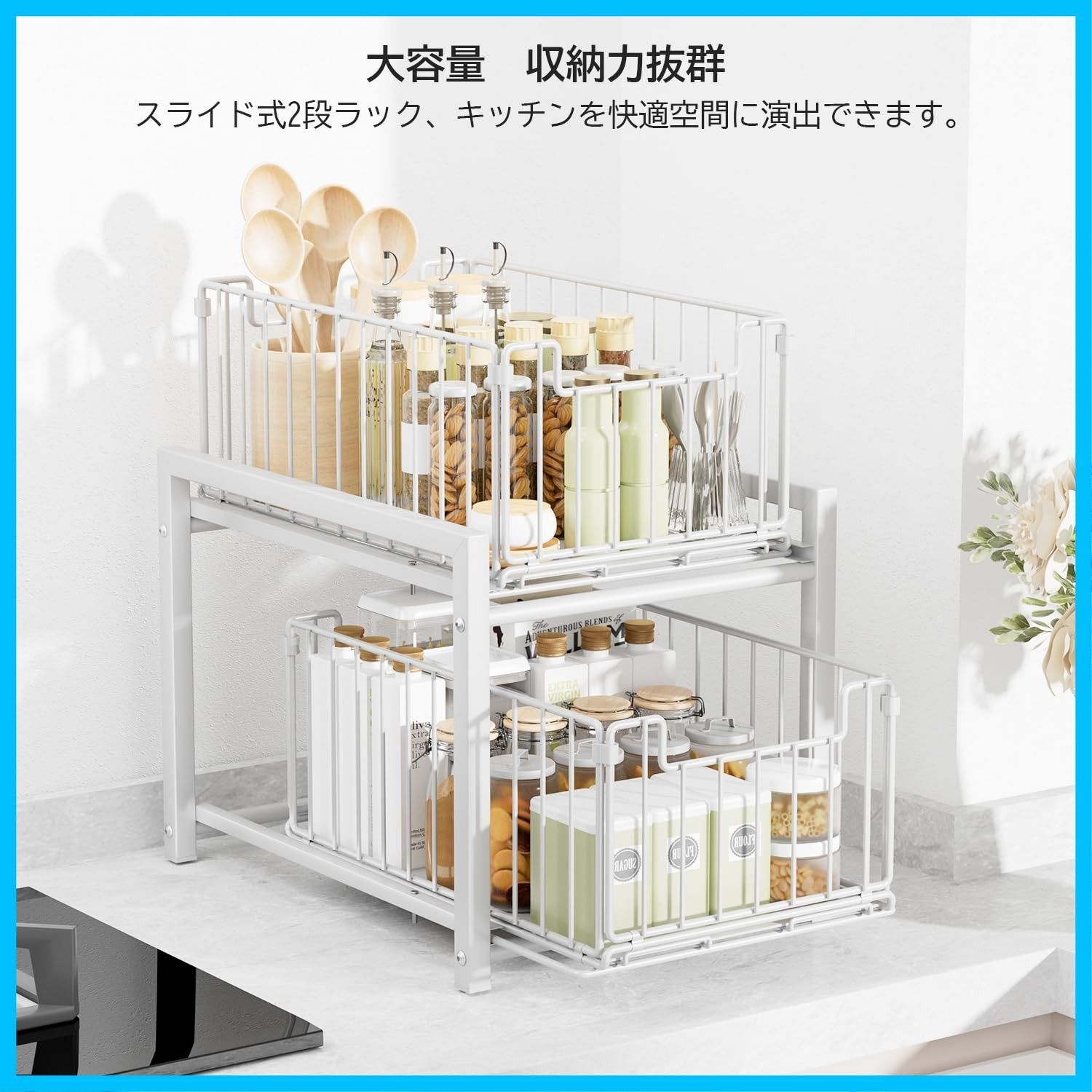 多機能ラック:シンク下はもちろん、調味料置くことも、洗面台下を置くことも、デスクの雑物や化粧品などは収納できます。奥のものが取り出しやすく、しまいやすいスライド式、スムーズに引き出せる、いろいろな場所に大活躍です。