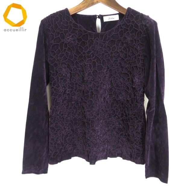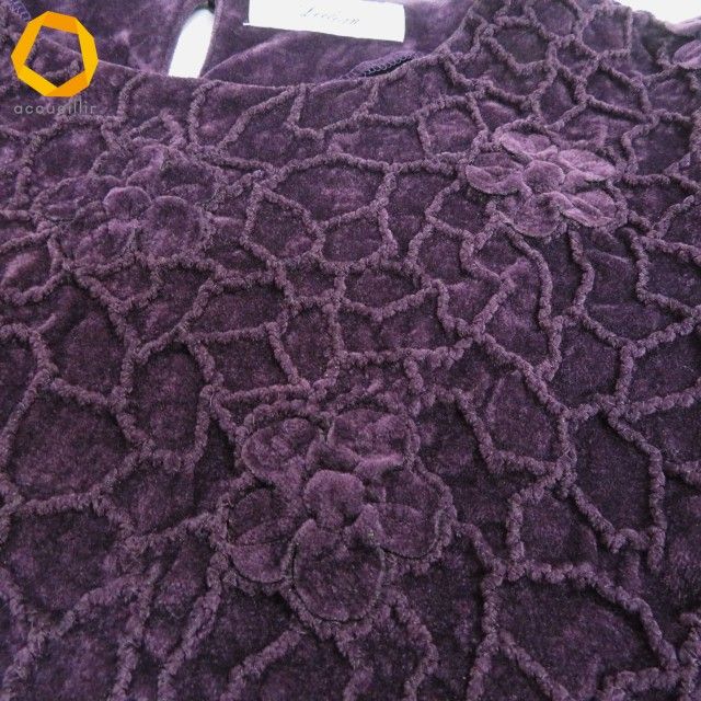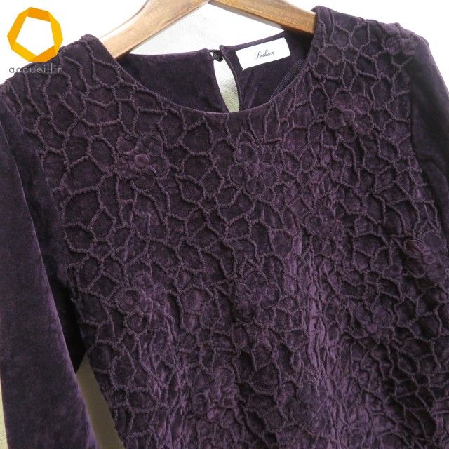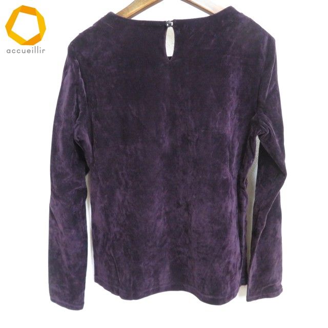 ◎商品名(タイトル):#w レリアン Leilian 長袖 カットソー 7号 紫系 ベロア調 花モチーフ 刺繍 日本製 レディース [808368] k01