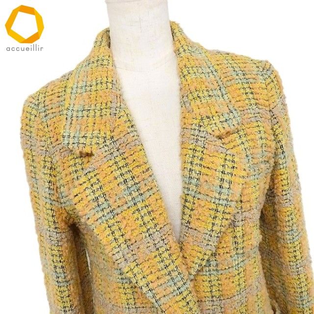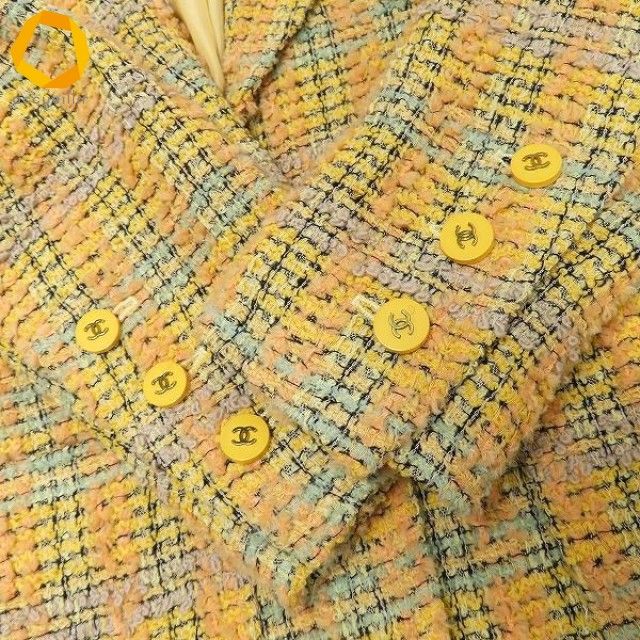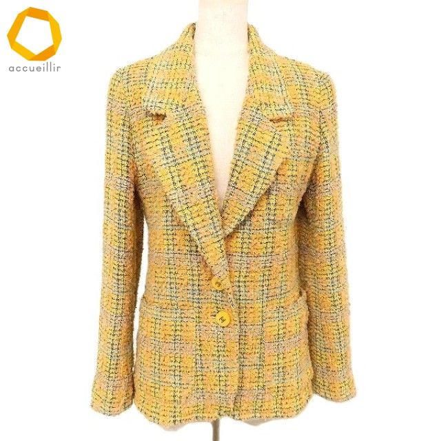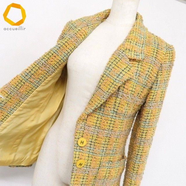 ◎商品名(タイトル):#apc シャネル CHANEL BOUTIQUE ジャケット 黄色系 マルチ ツイード ココマークボタン ヴィンテージ 1994 レディース アンゴラ混 [976792]