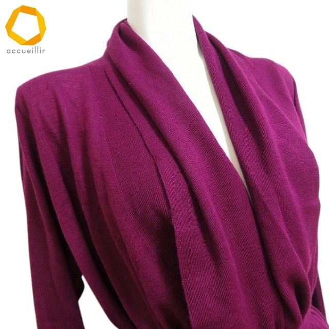 ◎商品名(タイトル):#a ローズティアラ Rose Tiara 長袖 ロング カーディガン L〜LL 赤紫 ウール混 毛混 大きいサイズ ゆったりサイズ ジュニアー [936924] k01