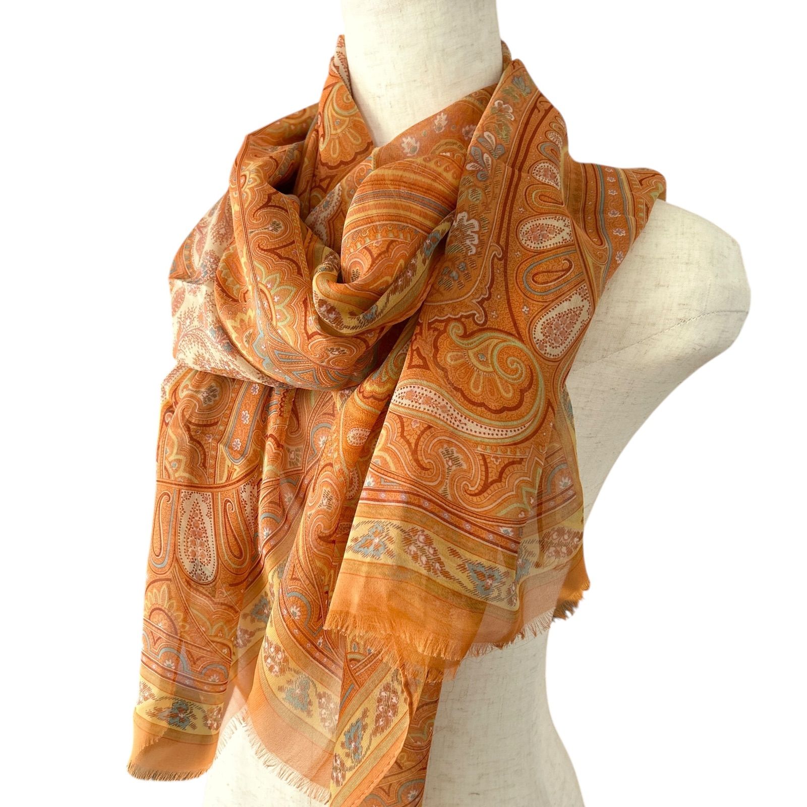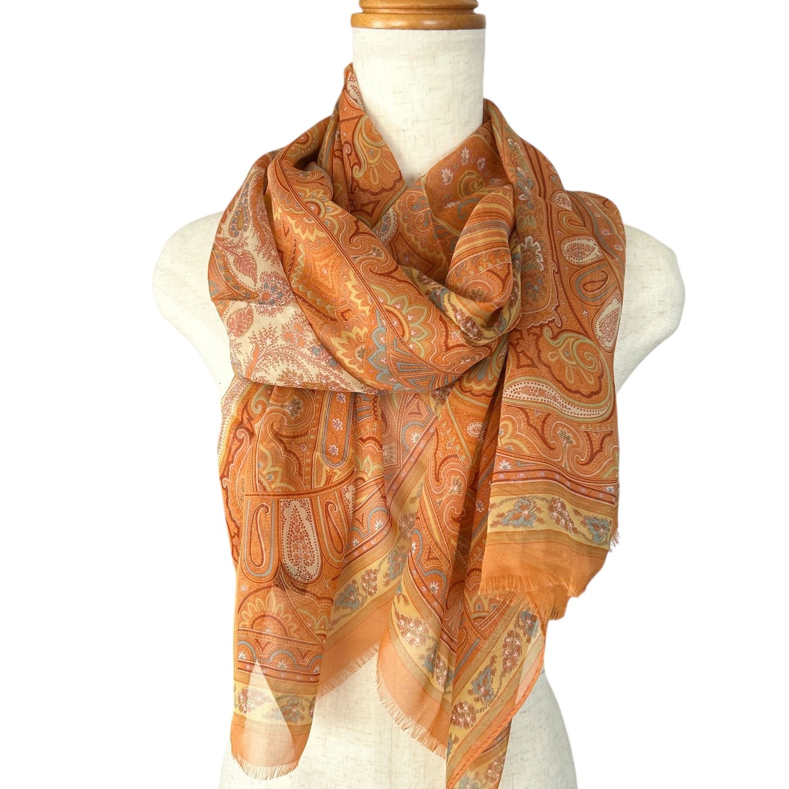 ETRO エトロ 大判スカーフ ストール シアー 透け感 ペイズリー柄 シルク イタリア製