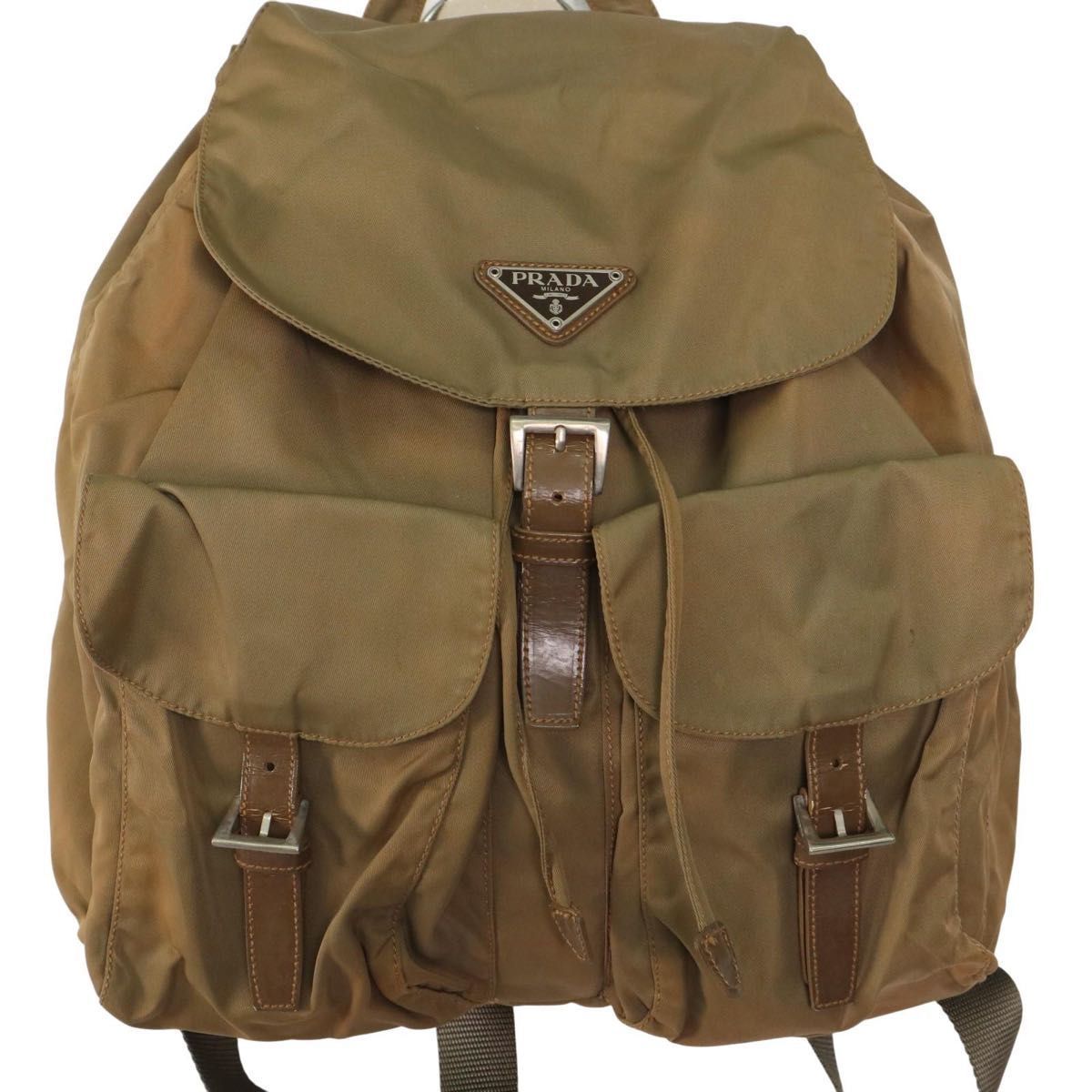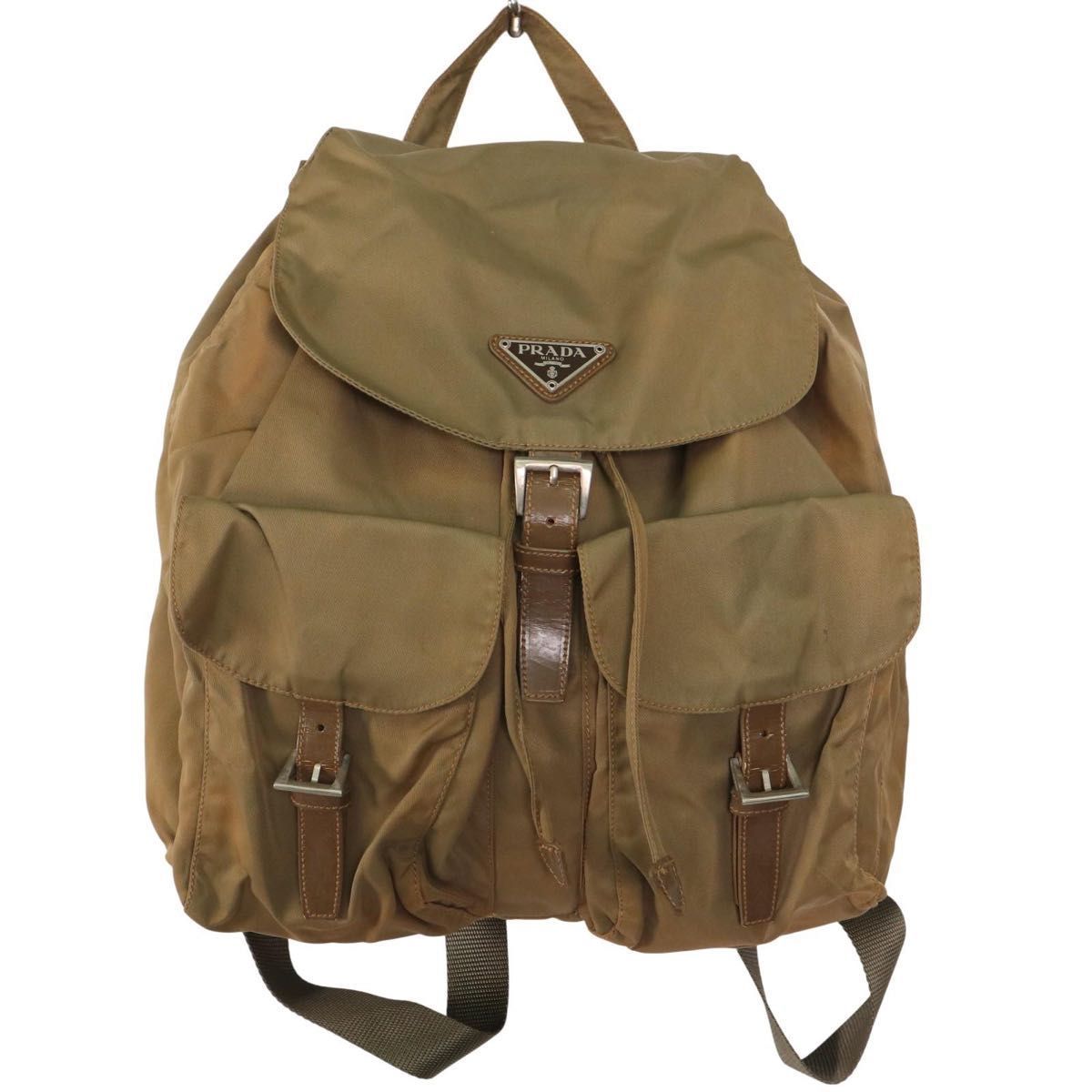 テスートナイロン デイバッグ リュック ロゴプレート 三角プレート カーキY2K メンズ レディース 兼用 通勤通学 旅行 ビジネス 肩掛け
