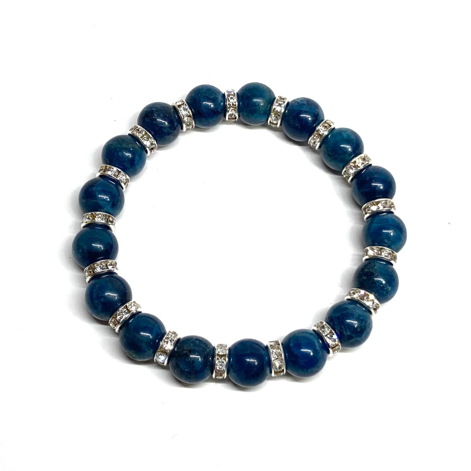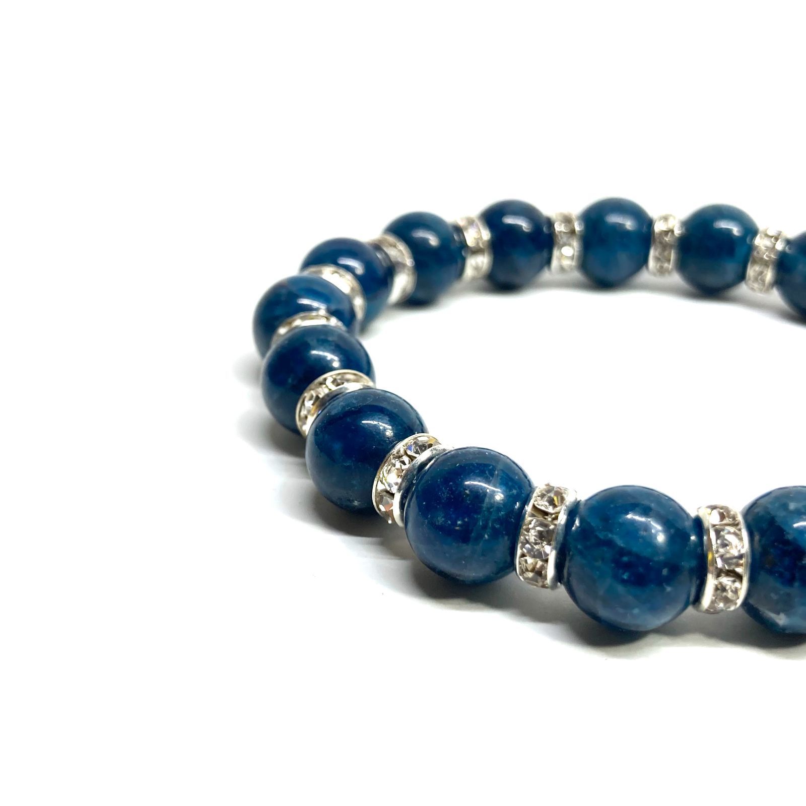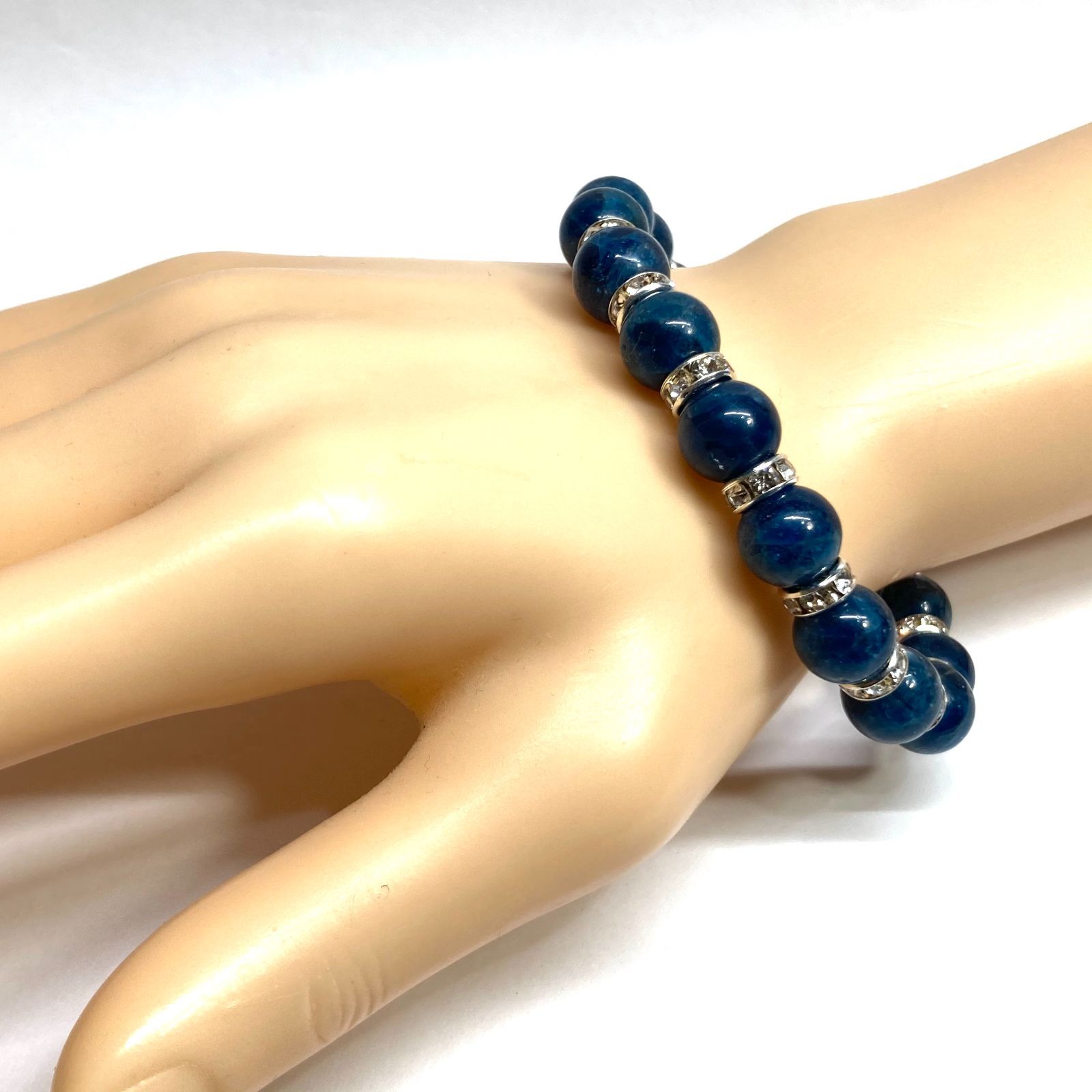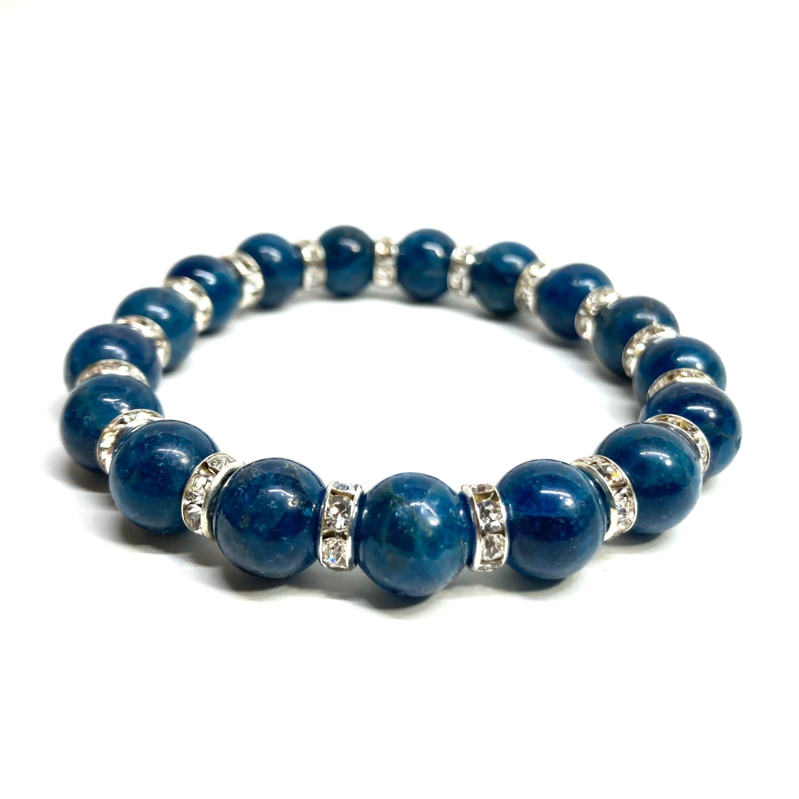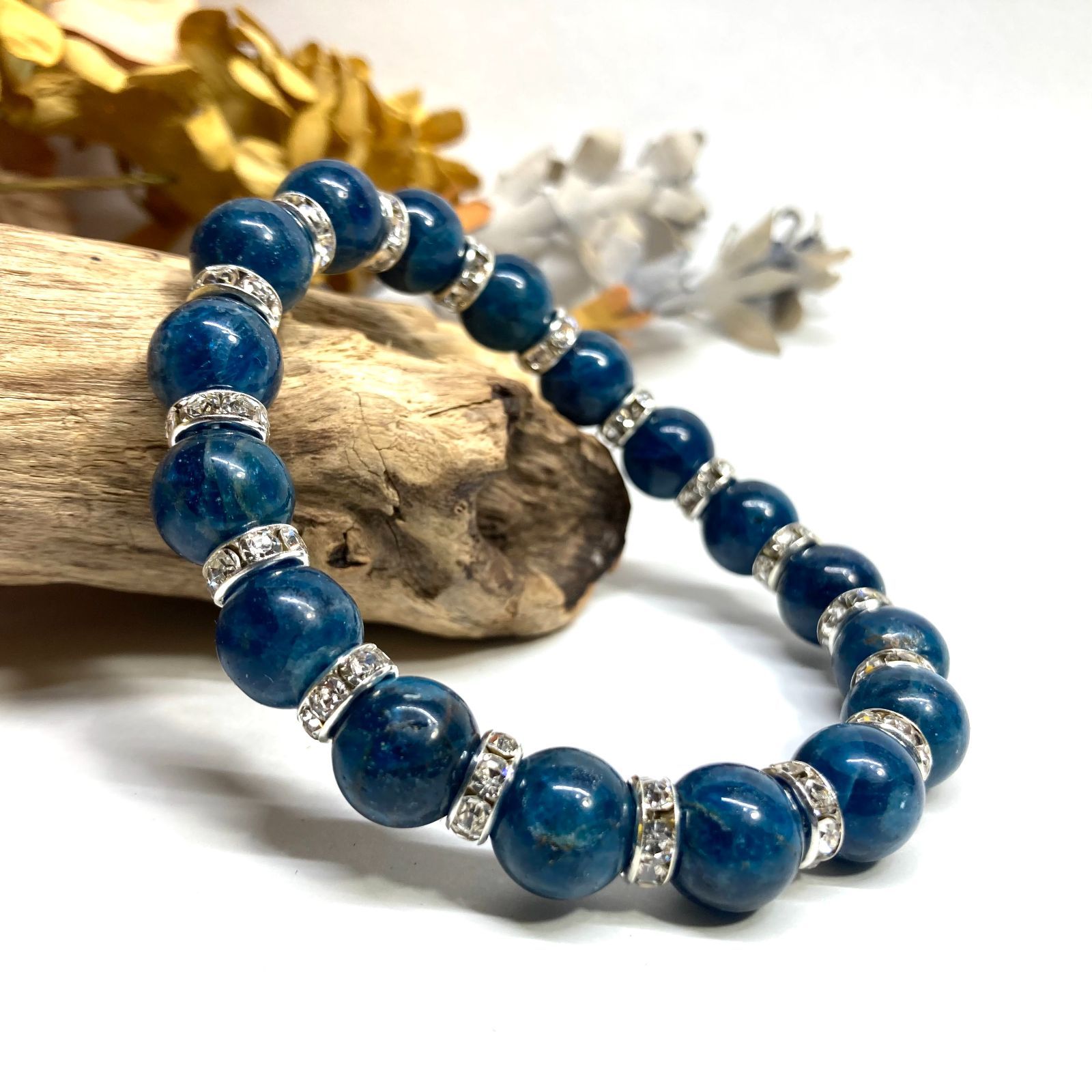 こちらは、アパタイトの10mm玉を使用したパワーストーンブレスレットです。石との間にはロンデルを挟み高級感を演出しております。シンプルなデザインは、シーン問わずどんなコーディネートとも合わせ易いブレスレットです。サイズは種類を選択からお選びください。(内周約14cm〜内周約22cmでお選び頂けます)当社の中でも一番人気の実績があるデザインとなっております。気になる方はお早めにどうぞ。