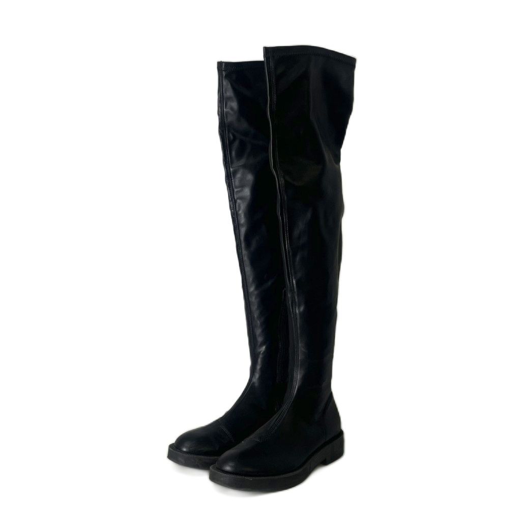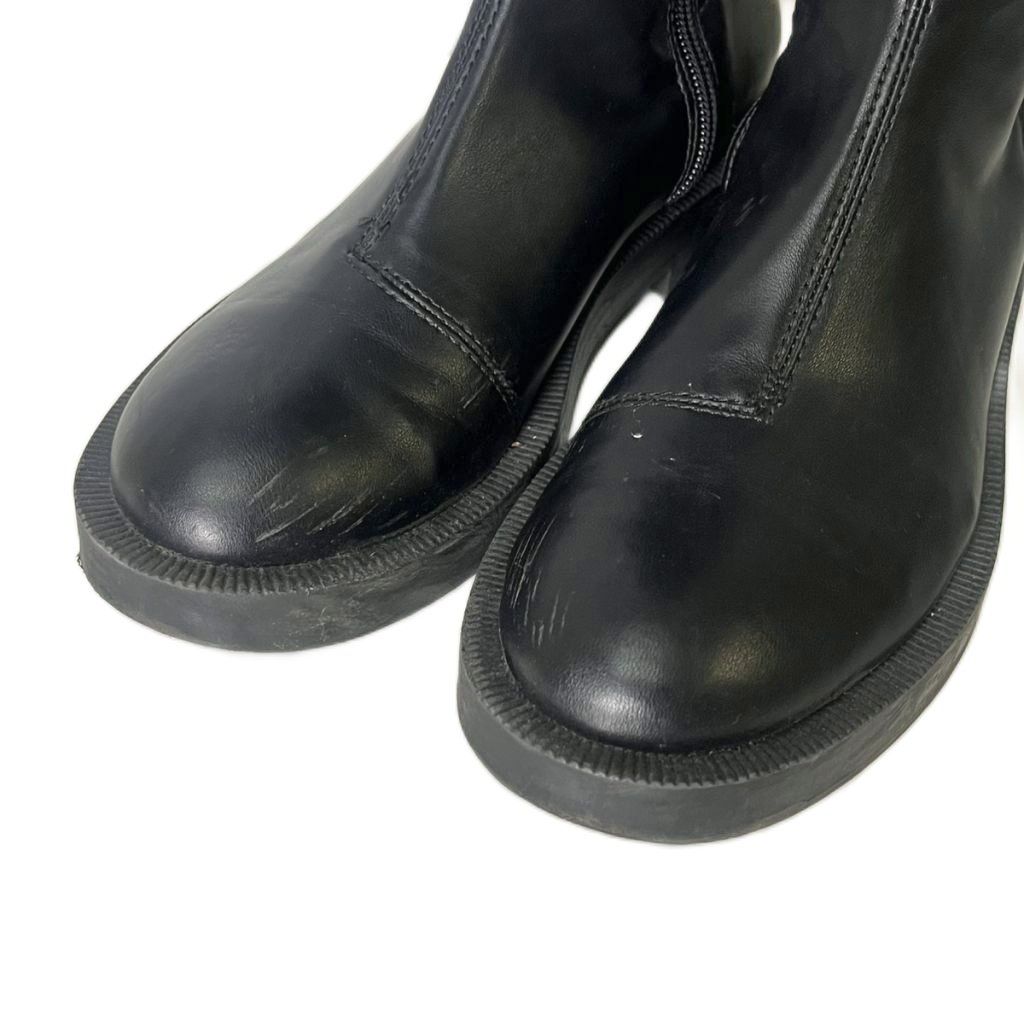 【商品名】ザラ ZARA フェイクレザー ロングブーツ ラウンドトゥ 36 23.5cm 黒 ブラック