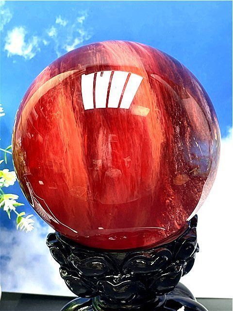 約:141mm重さ約:3740g超綺麗★赤水晶丸玉B87E1/162E15A