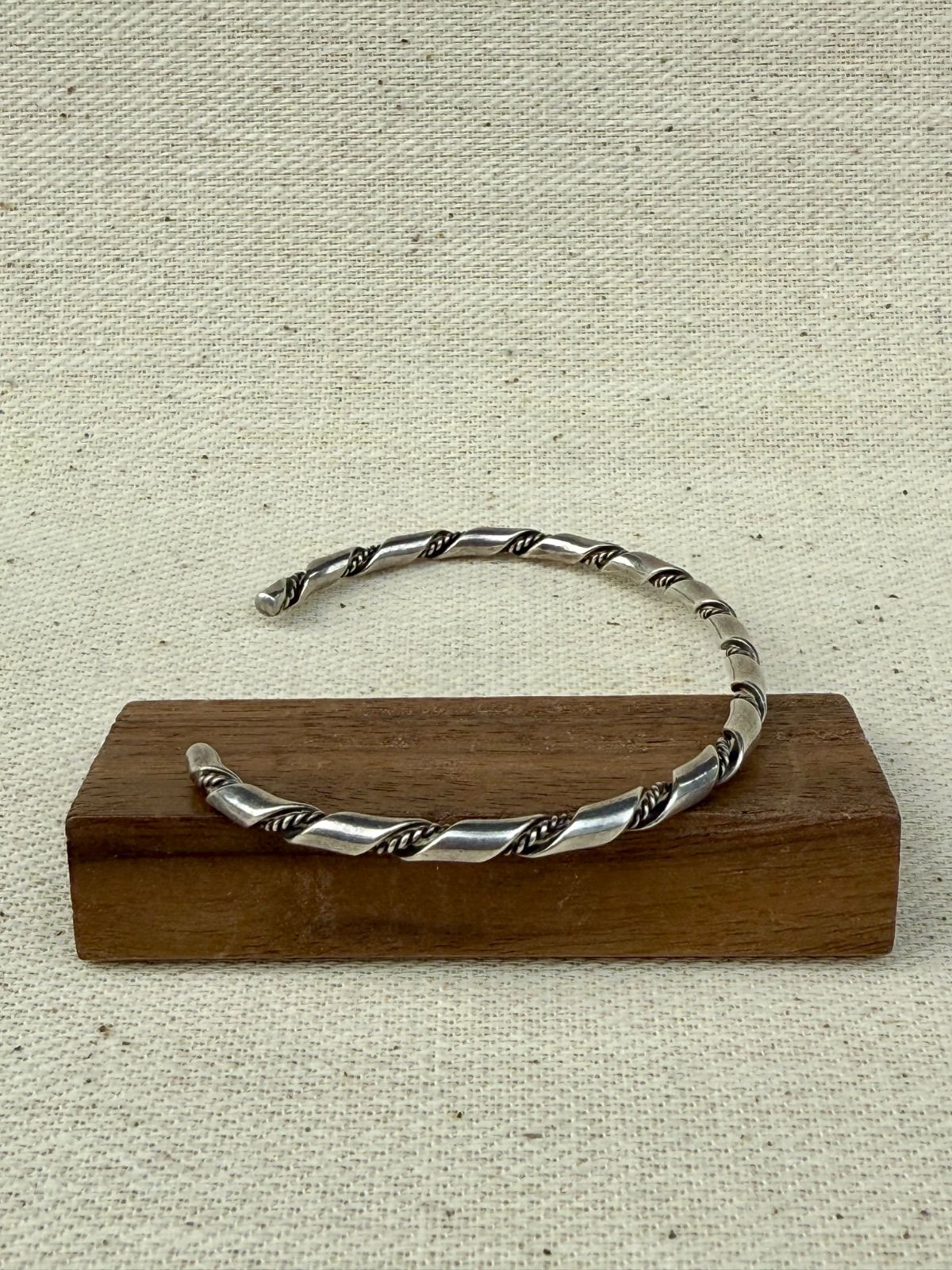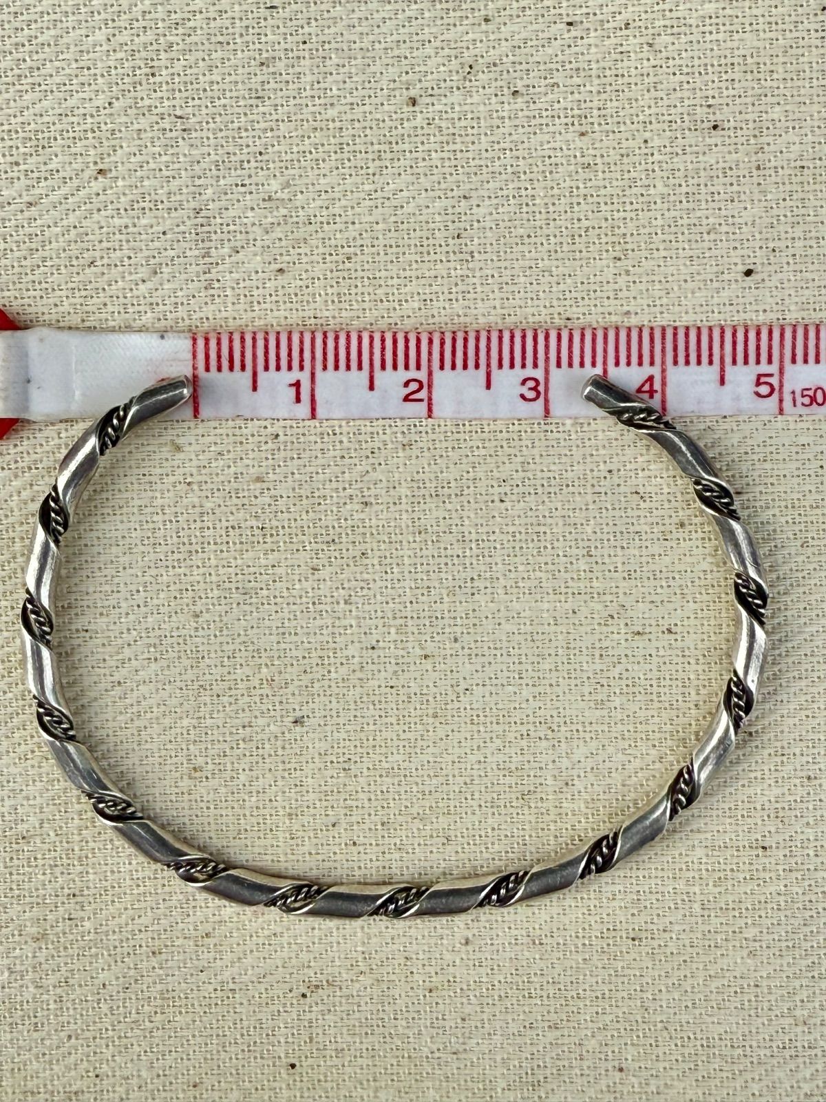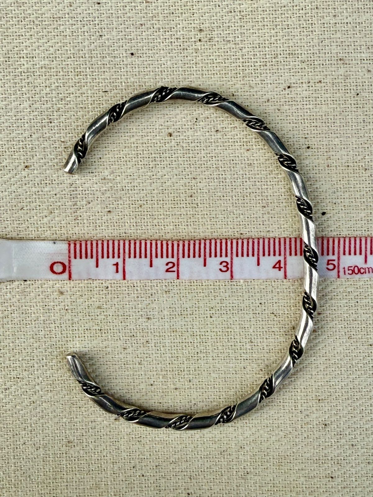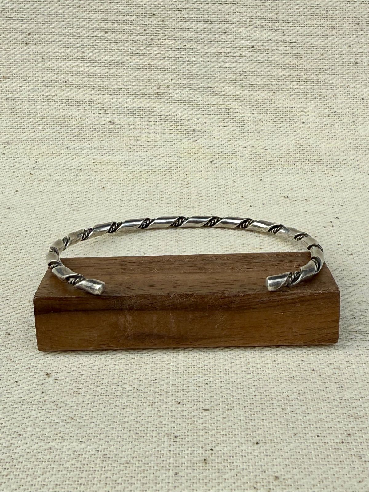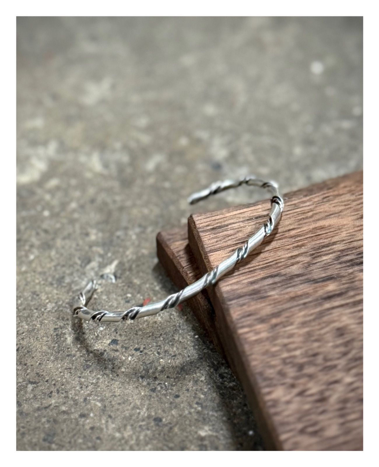 その隙間に細かなロープワイヤーを組み合わせた、静かな表情のシルバーバングル。