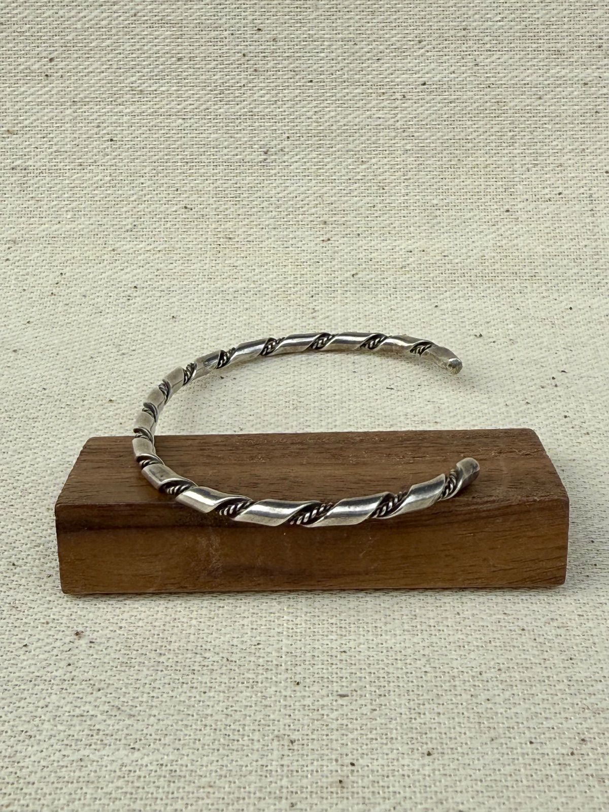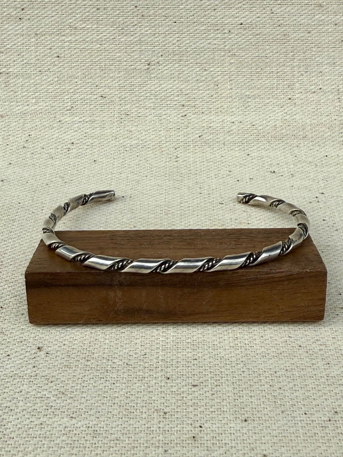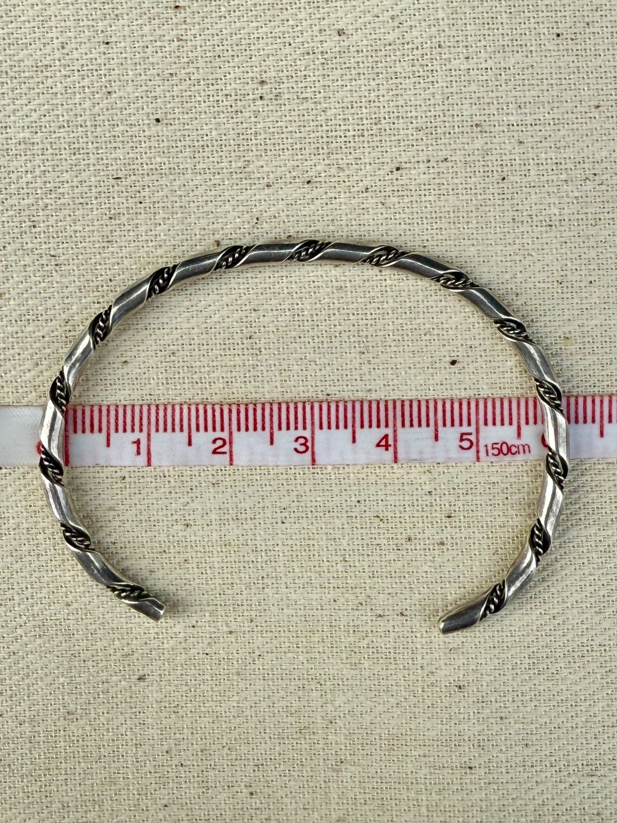 フラットに成形されたシルバーに、一定のリズムでツイストを加え、