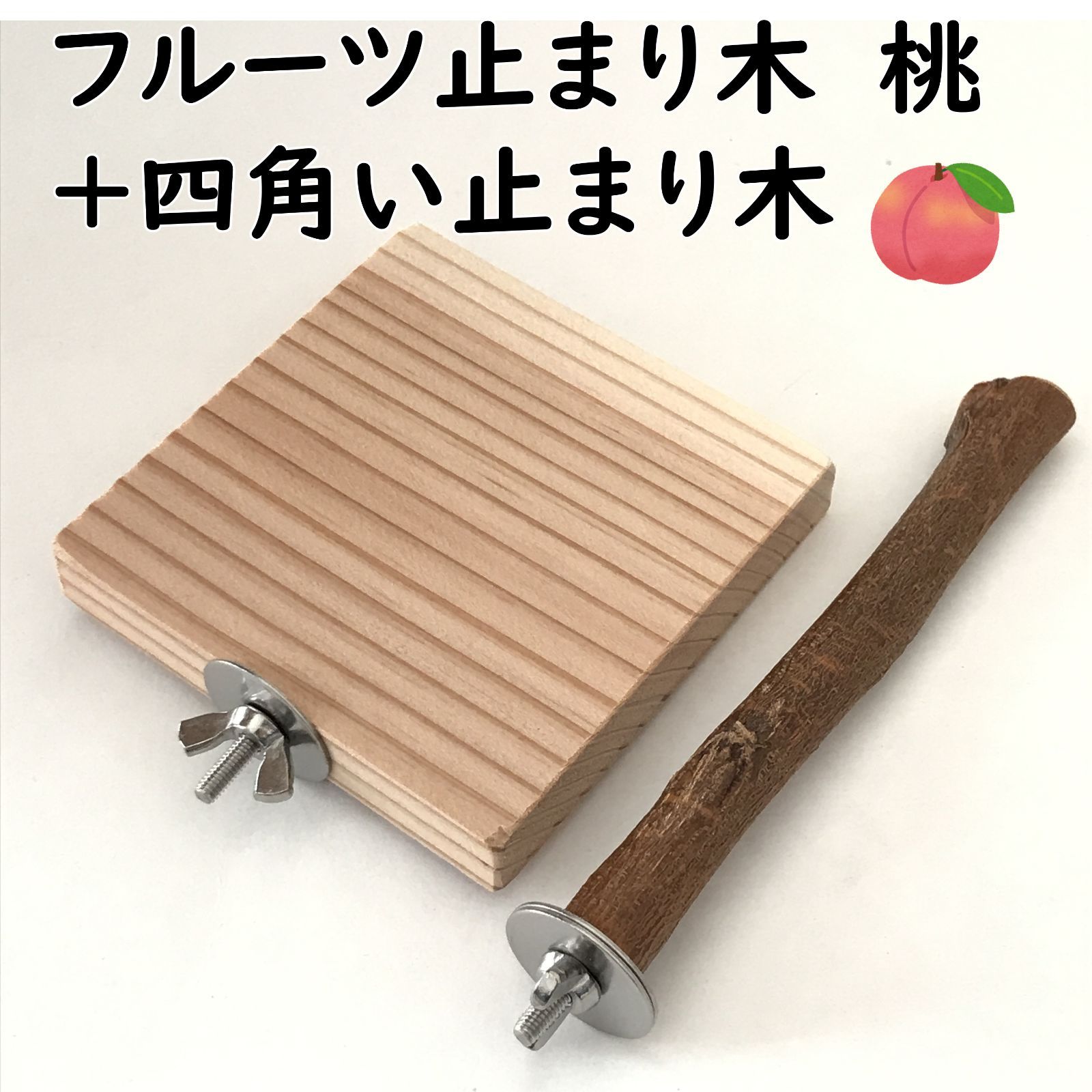 桃のとまり木と四角い止まり木(杉)のセットです。