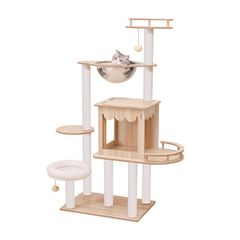 【2本で支える展望台!】高い展望台部屋中を見渡すことが大好きな猫ちゃんに!一本の柱だけでは折れるリスクが高く、猫ちゃんが危ないです、本製品は2本で支えているので、太めな猫ちゃんも、活発な猫ちゃんも大丈夫!
