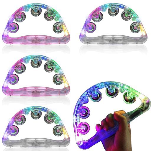 【光るタンバリン】光る、LEDタンバリン4個セットです。耐用性に良いプラスチック、品質の澄んだ音;スイッチを入れるとインボーカラーに光る仕様で、その華やかさで注目を集めます!