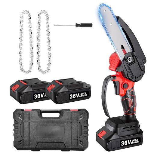【高効率ブラシレスモーターを搭載したチェーンソー】このブラシレスモーターを搭載した充電式チェーンソーは、強力かつ効率的な切断を可能とします。銅製モーターに比べて、使用寿命が320%向上し、出力が80%増加し、消費電力が60%削減されています。出力は550Wで、回転数は2500r/minに達し、直径15cmの木材をわずか8秒で切断することが可能です。木材、竹、枝などの切断には最適です。