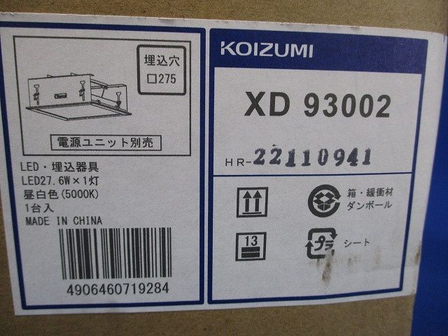 LEDベースライト スクエアタイプ 5000K 昼白色 電源別売 XD93002