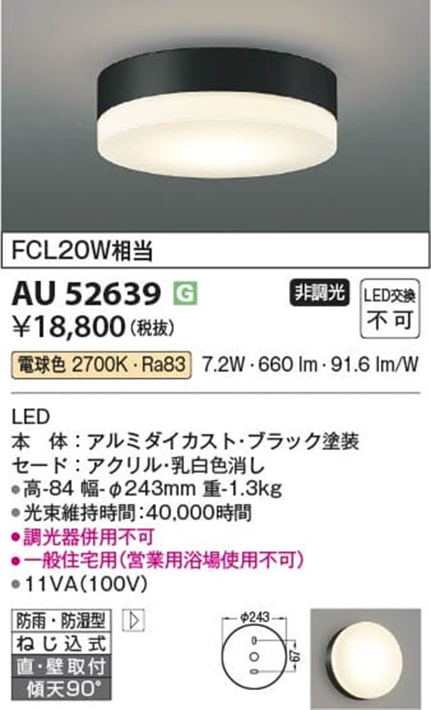 防雨防湿型シーリングライト 2700K 非調光 AU52639