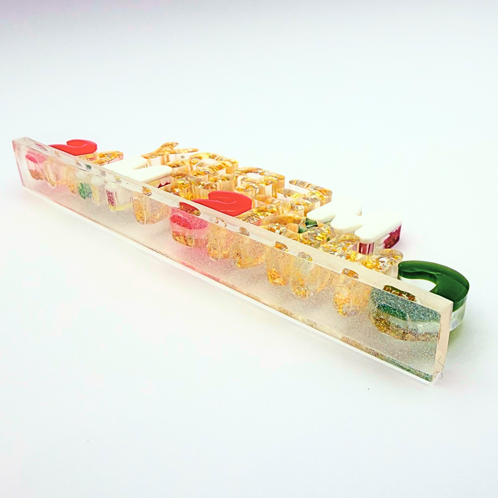 ガラスのような透明感のあるレジンを使用したハンドメイド作品です。