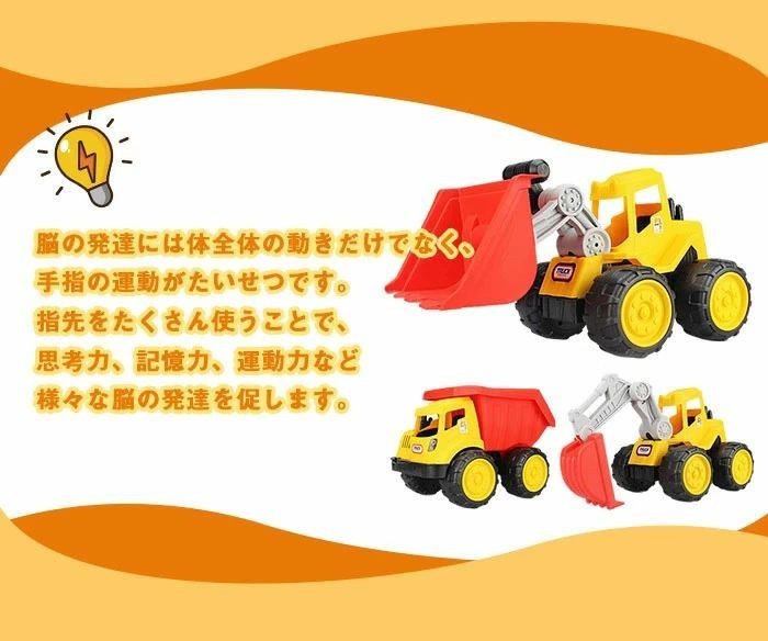 ?【子どもへ】:車遊びをしているうちに作業車両の機能を認識させ、それに脳のはたらきを開発するおもちゃによって、創造力や想像力を鍛えるだけでなく、集中力を養うことができ!