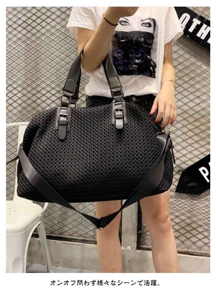 メッシュデザインのボストンバッグ マチが広く収納力も抜群!