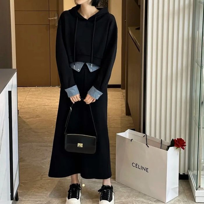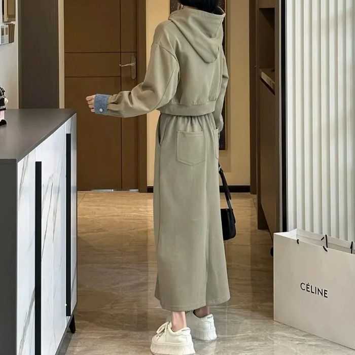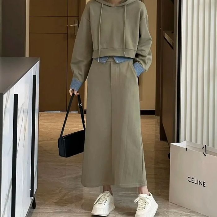 ■ パーカーとスカートの上下セットで、簡単にコーディネートが完成。
